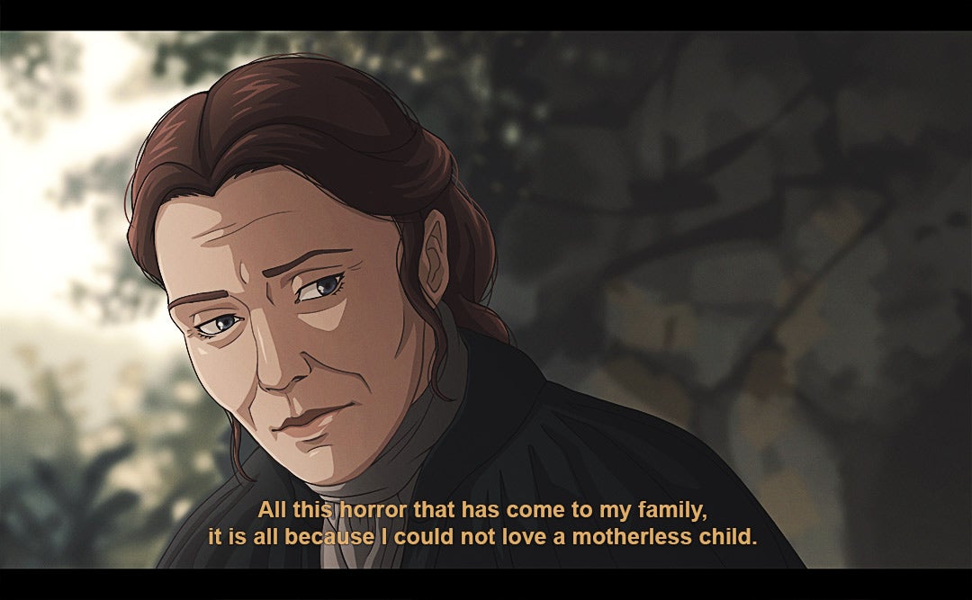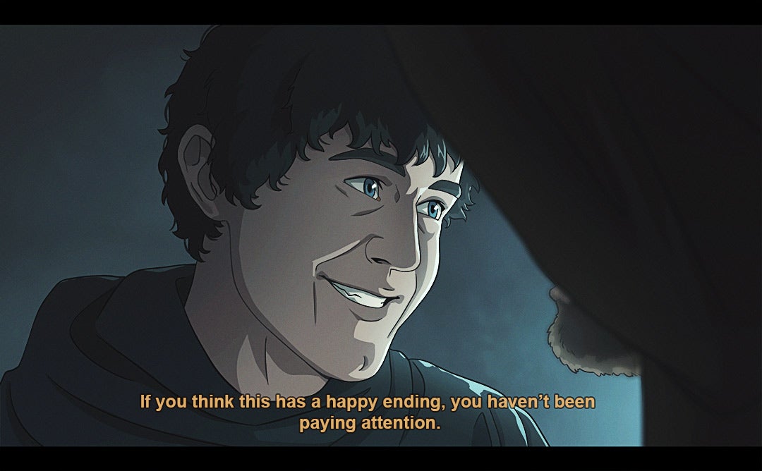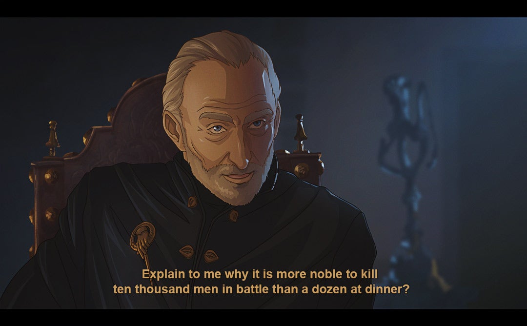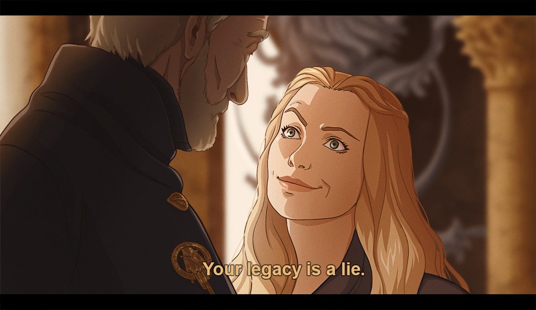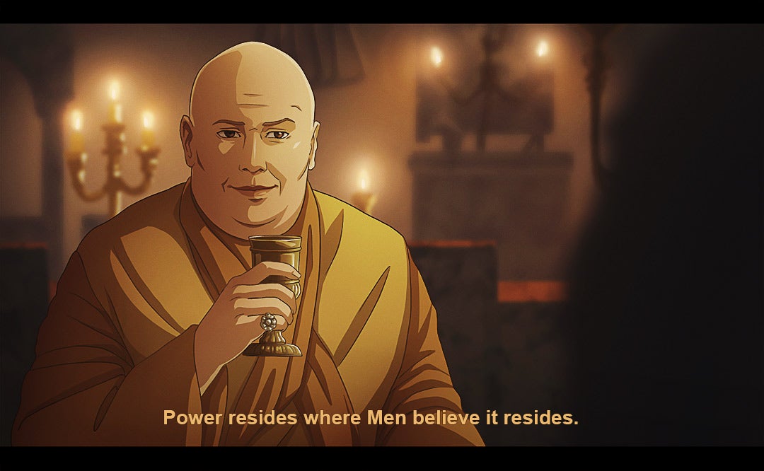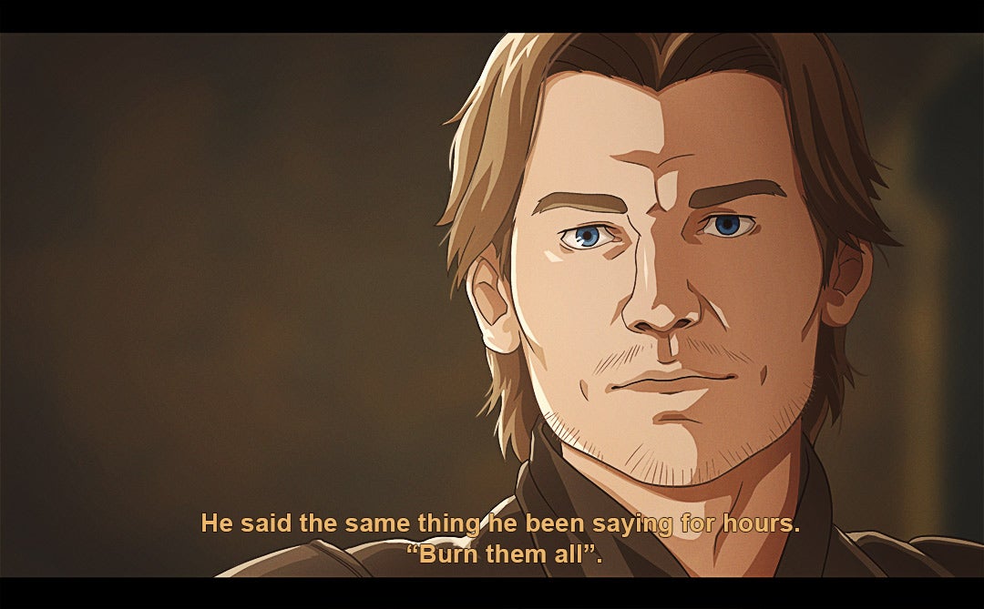 Since 2017, Carolina has been turning key lines/moments from the series into stills from an anime, with a style that’s inspired by stuff like Berserk and Savin Yetman-Eiffel’s Two Queens