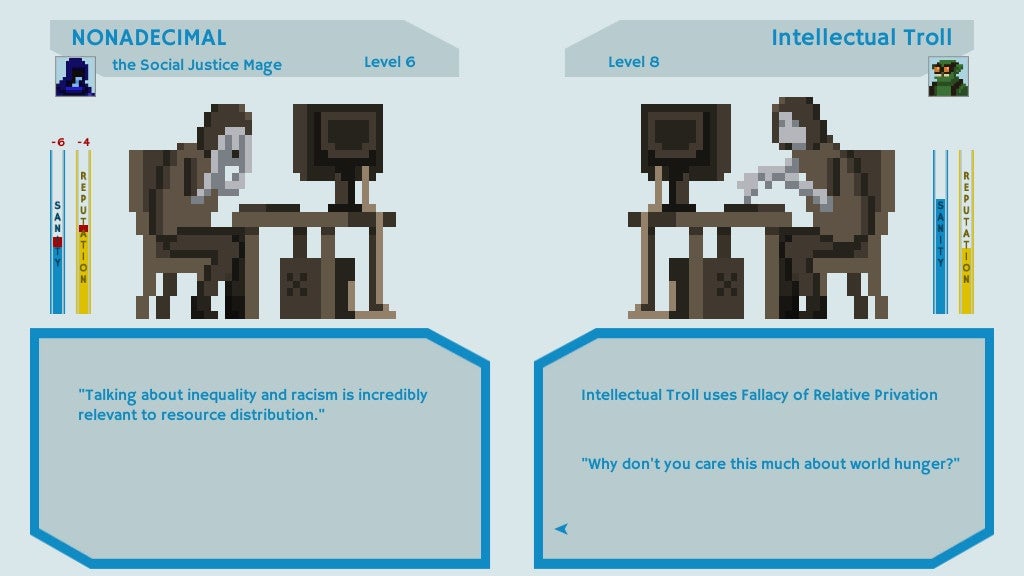 Other times, people donât know quite why their games donât get greenlit. On that front, thereâs the especially curious case of Social Justice Warriors, a satirical game about trolls, labels, and us-vs-them mentalities. Developer Nonadecimal Creative told me: