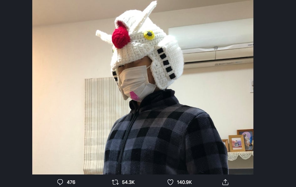 Twitter user Namio’s hobby isn’t just crocheting, but crocheting woolen Gundam helmets. It took days to crochet each helmet. The RX-178 Gundam Mk-II helmet, for example, took four days, with Namio working on them from morning to night for two of those. The result is glorious. Perfect for winter, too. Yes, that’s a crocheted face…