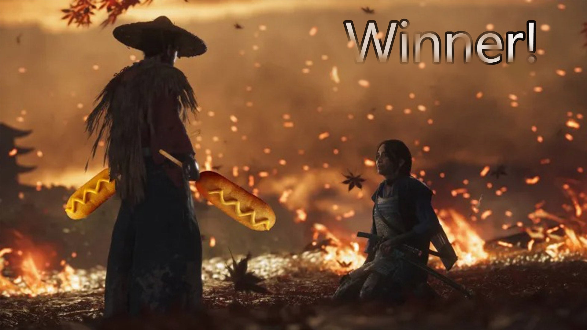 Food is good. Food on a stick…even better. Last week, in honor of the lazily named National Food On A Stick Day, I asked you all to create images featuring food, sticks, and video games. Our winning image this week comes from Kaput Noob. It turns out two big corn dogs can still look cool…