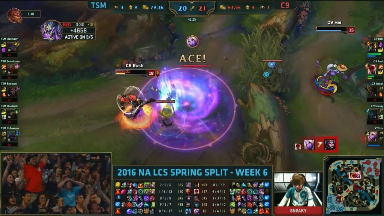 In a League of Legends match full of moments that were both ridiculous and amazing, Cloud9’s Hai and Team SoloMid’s Bjergsen may have taken the cake with this incredible nail-biter of a brawl. I’ll have lots more to say about this second-place match between TSM and Cloud9, which was the League of Legends equivalent of…
