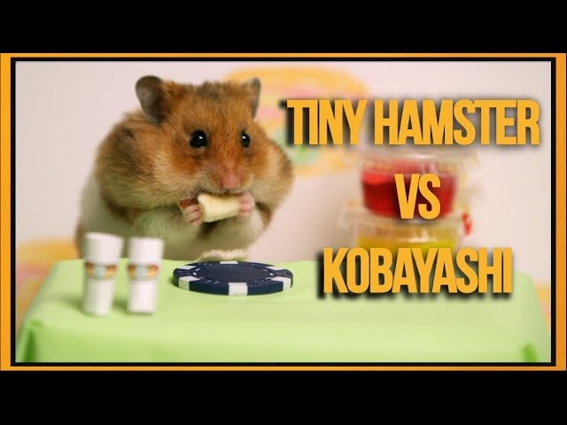 A Tiny Hamster. Takeru Kobayashi. Two competitive eaters enter, but only one can be the champion. Let the cuteness commence. Thrill as two champions see who can adorably shovel more hot dogs into their mouths (adjusted for size, of course). Will it be the Guinness Record holder or the diminuative rodent? You’ll have to see…