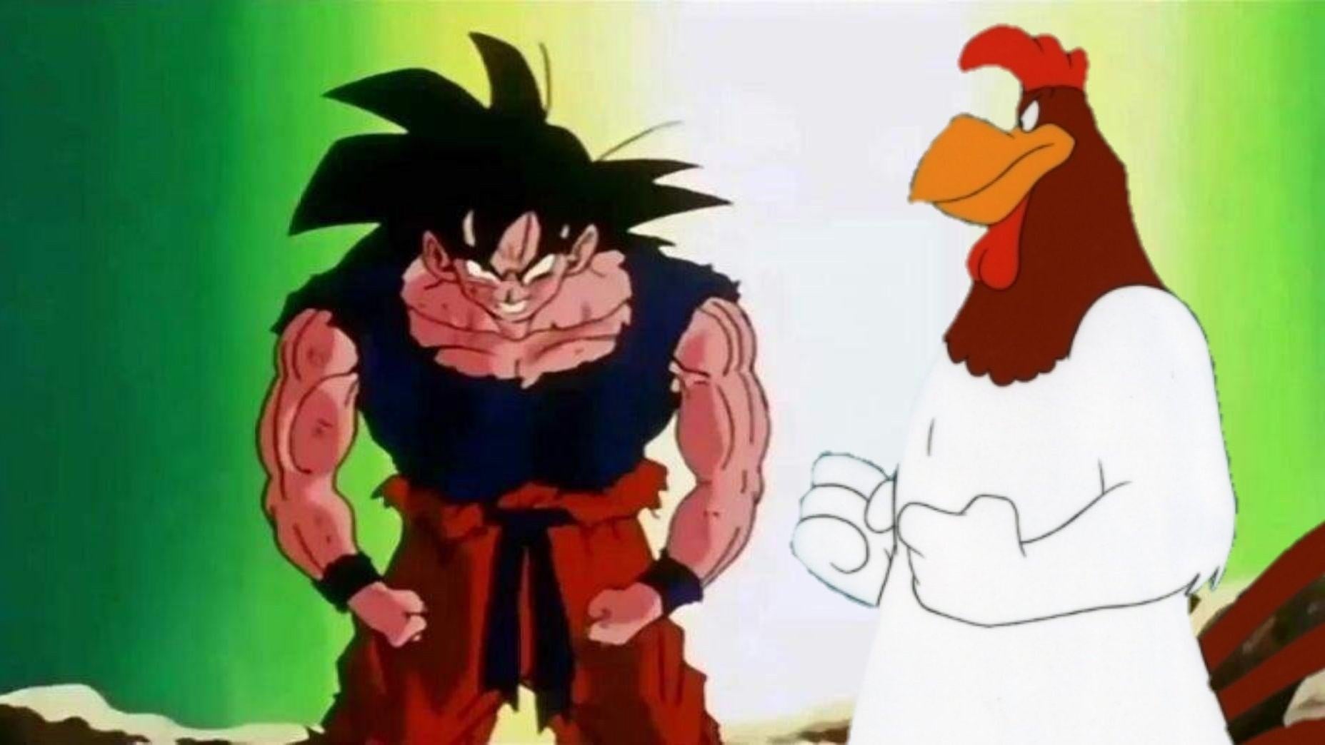 Social media is blowing up with mock-ups of the iconic Looney Tunes rooster coaching anime and video game characters through tough times