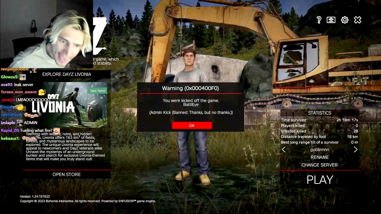 The controversial Kick streamer got a message on the DayOne Chernarus server that read, 'Thanks, but no thanks'