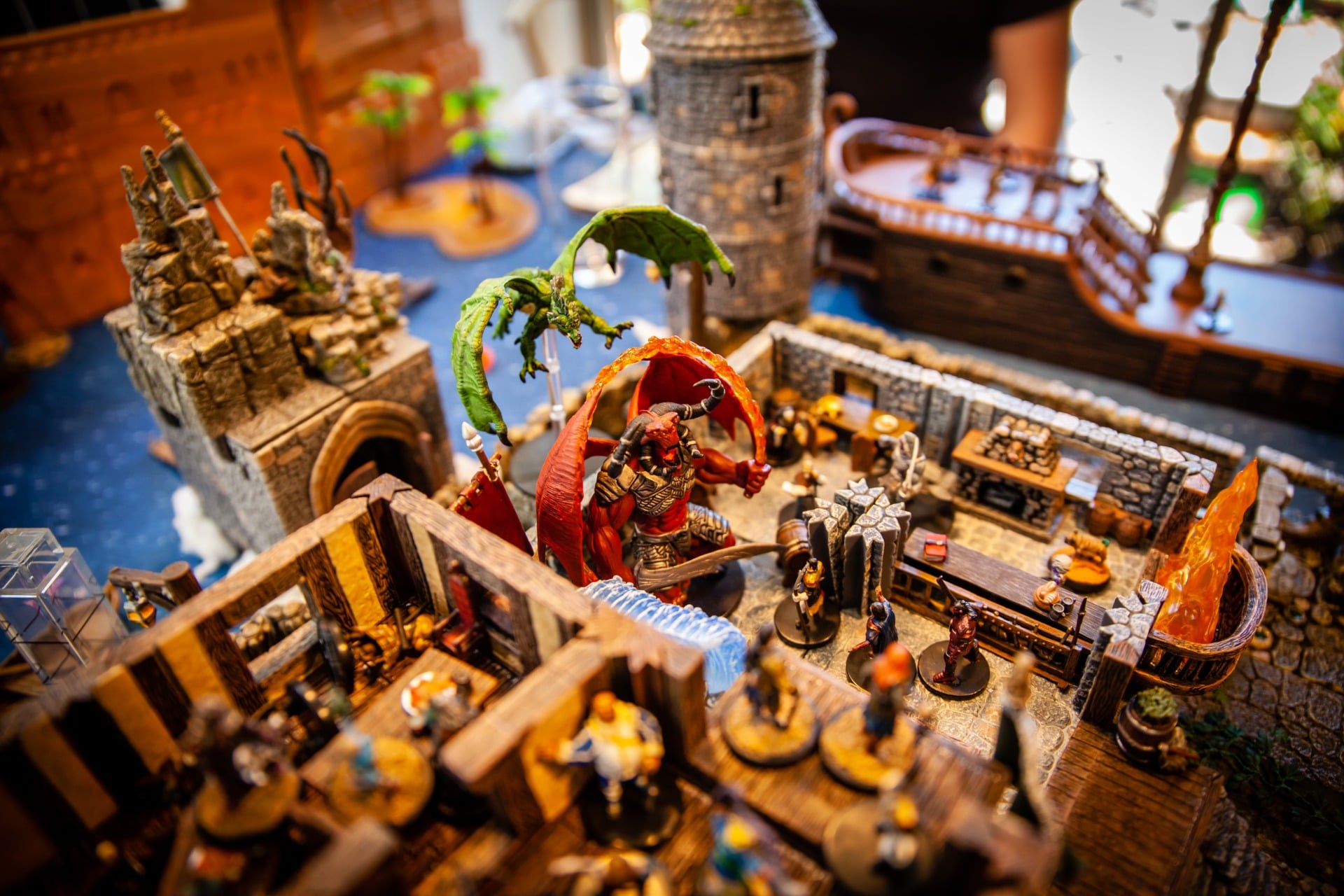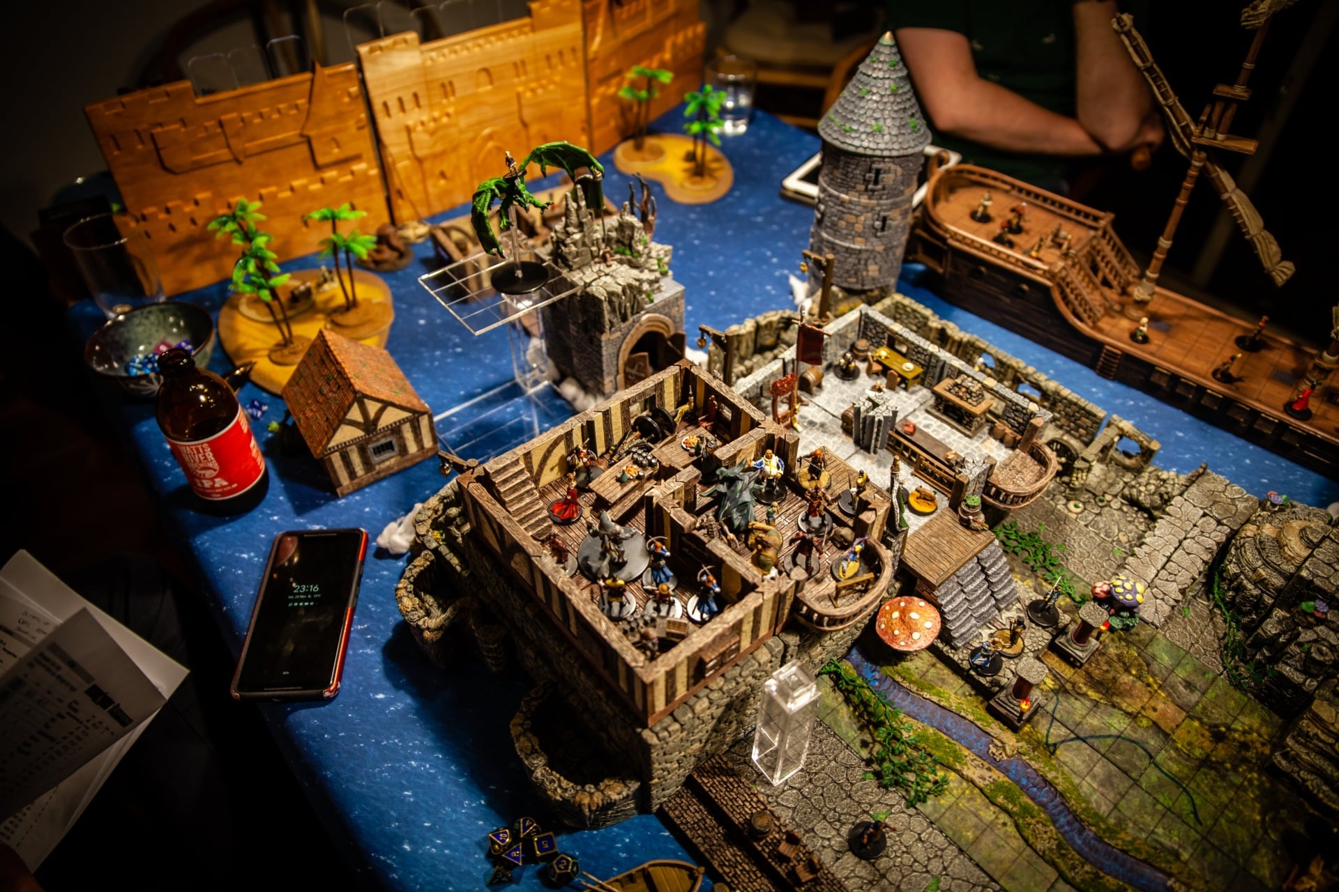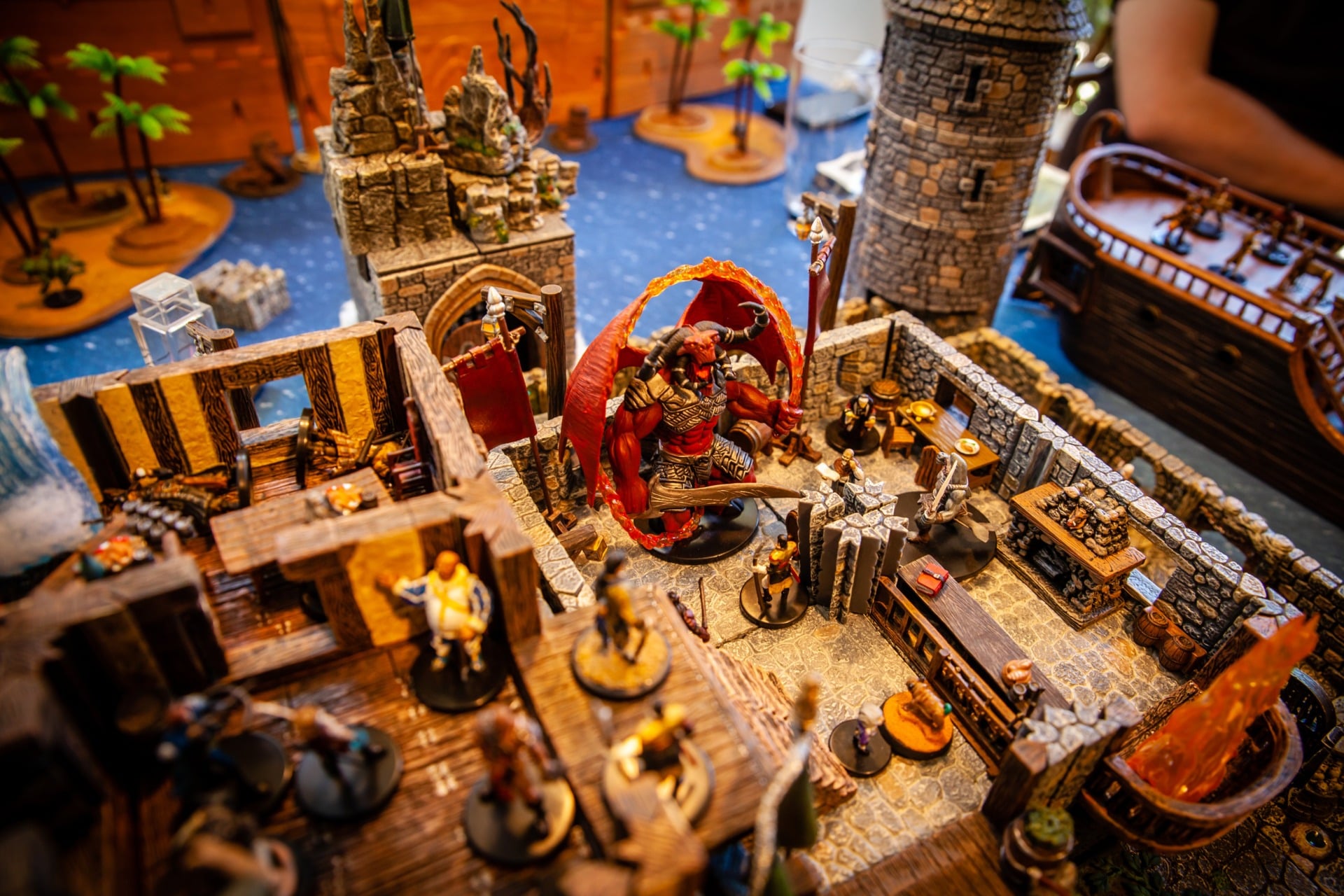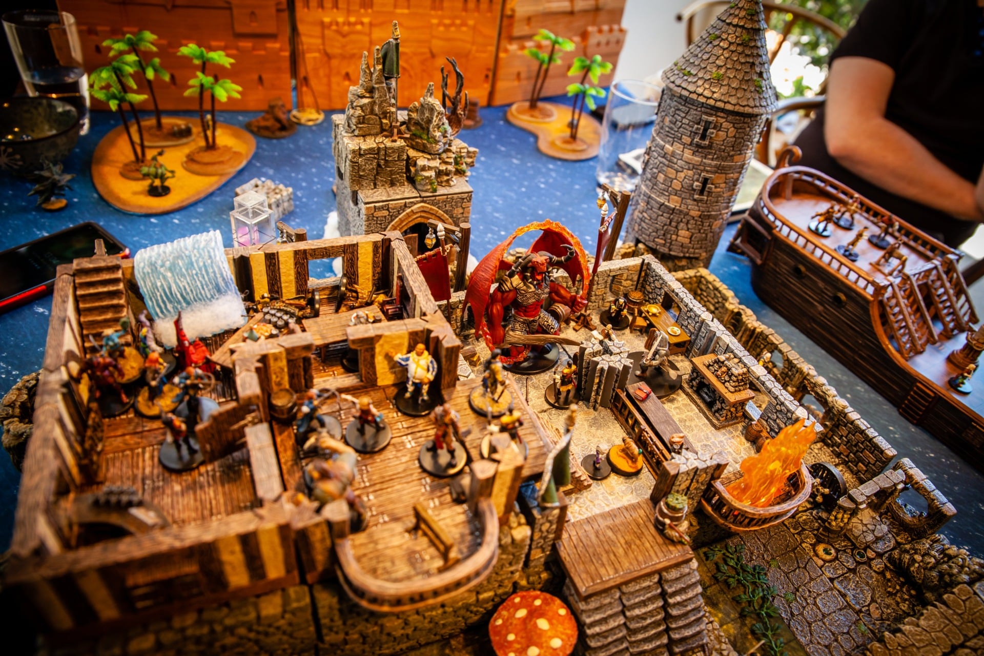 Overseen by DM Paul Houlihan, who also did all the painting (the terrain is a mix of stuff, most of it from Dwarven Forge), the party (Persimmonās Hate) can be seen here wrapping up a 15-hour session to conclude the second of six books in the Skull & Shackles campaign
