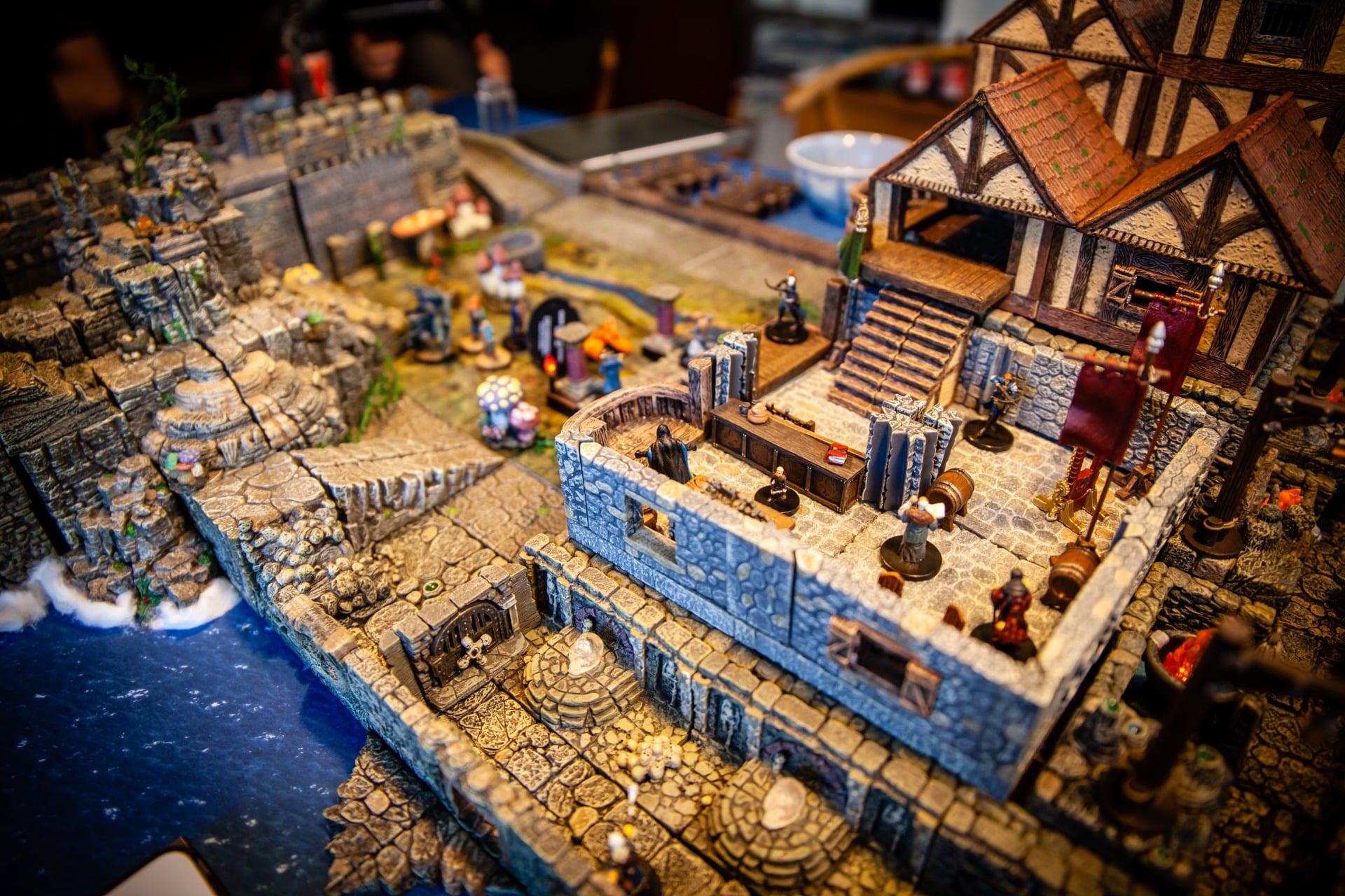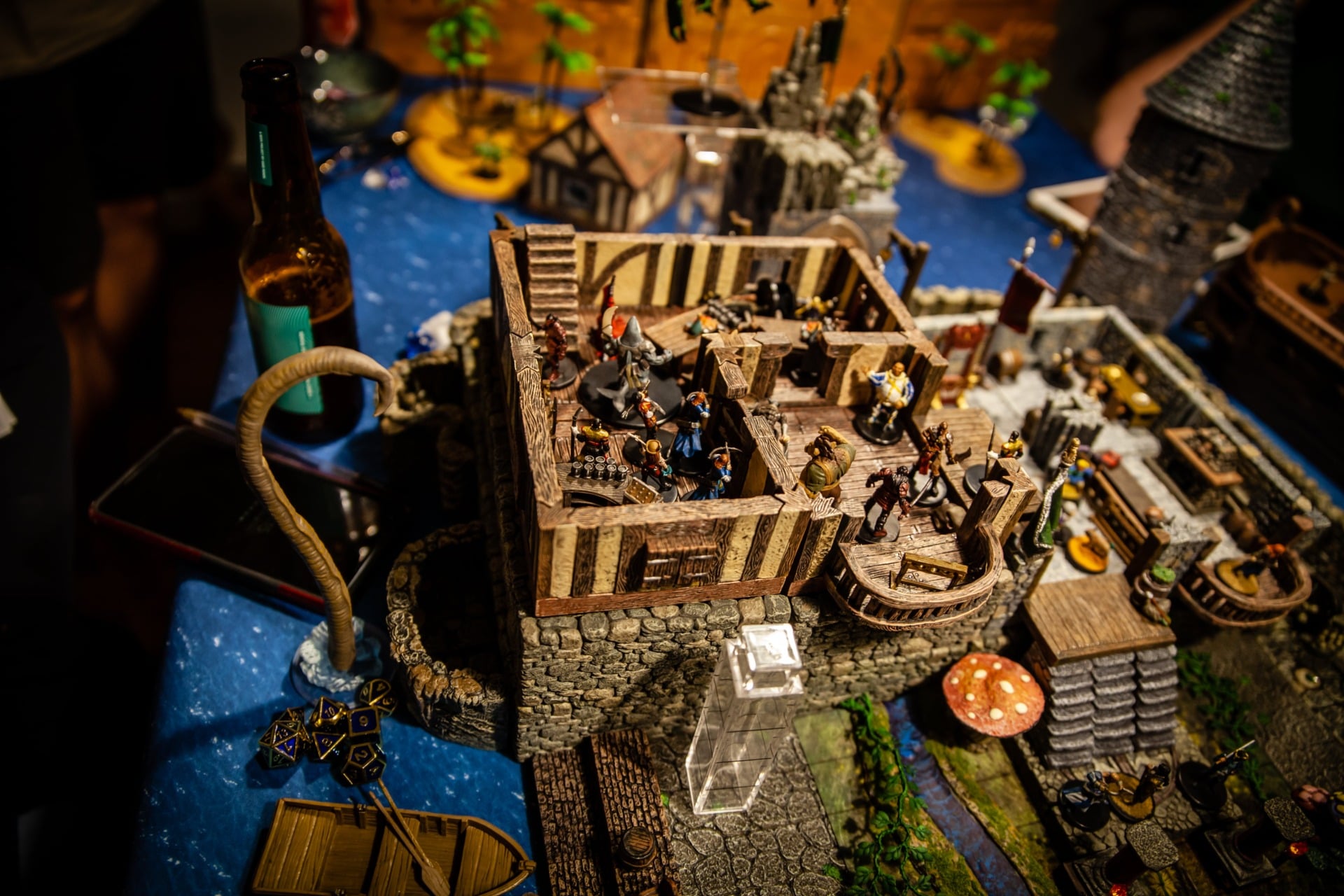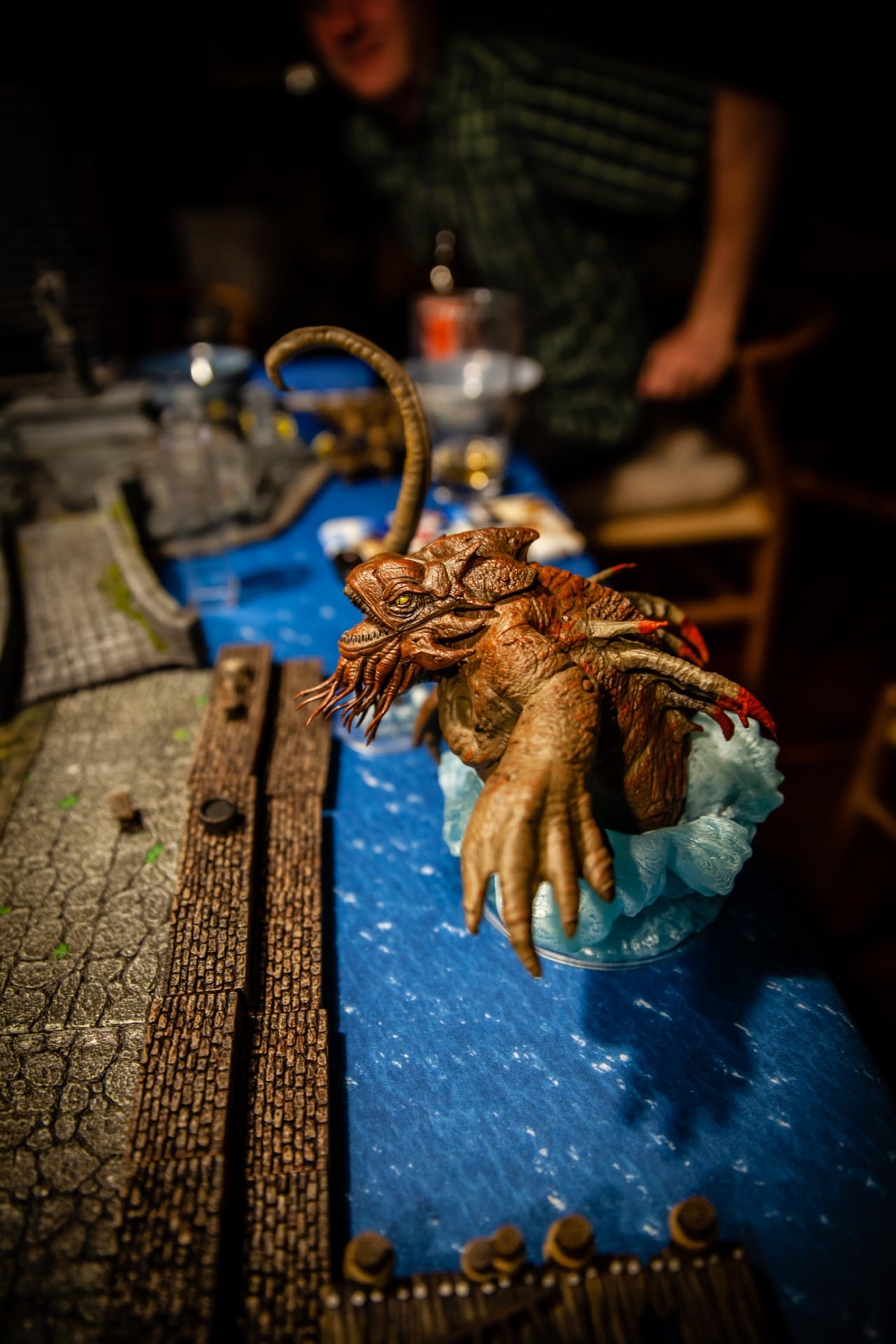 Overseen by DM Paul Houlihan, who also did all the painting (the terrain is a mix of stuff, most of it from Dwarven Forge), the party (Persimmonās Hate) can be seen here wrapping up a 15-hour session to conclude the second of six books in the Skull & Shackles campaign