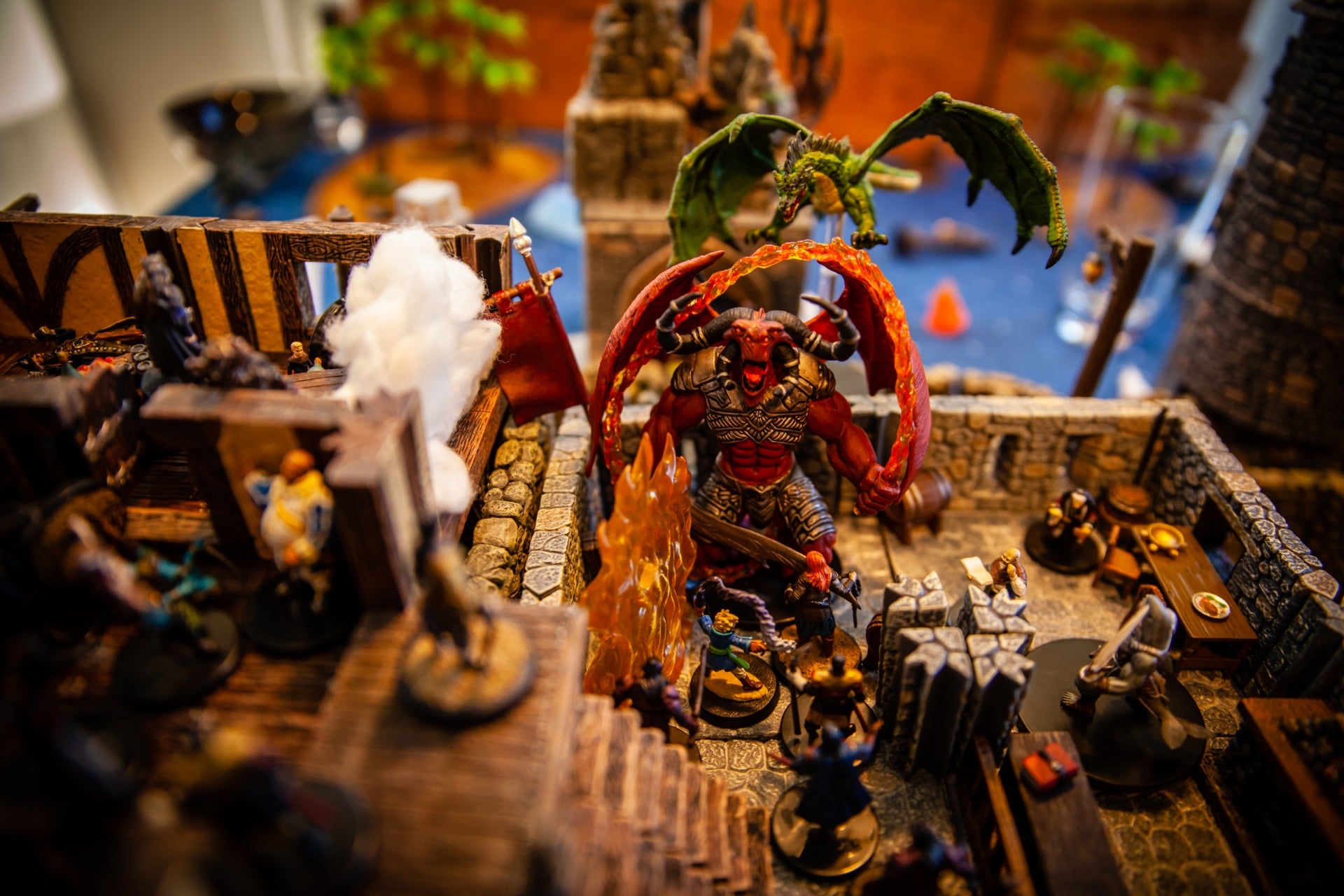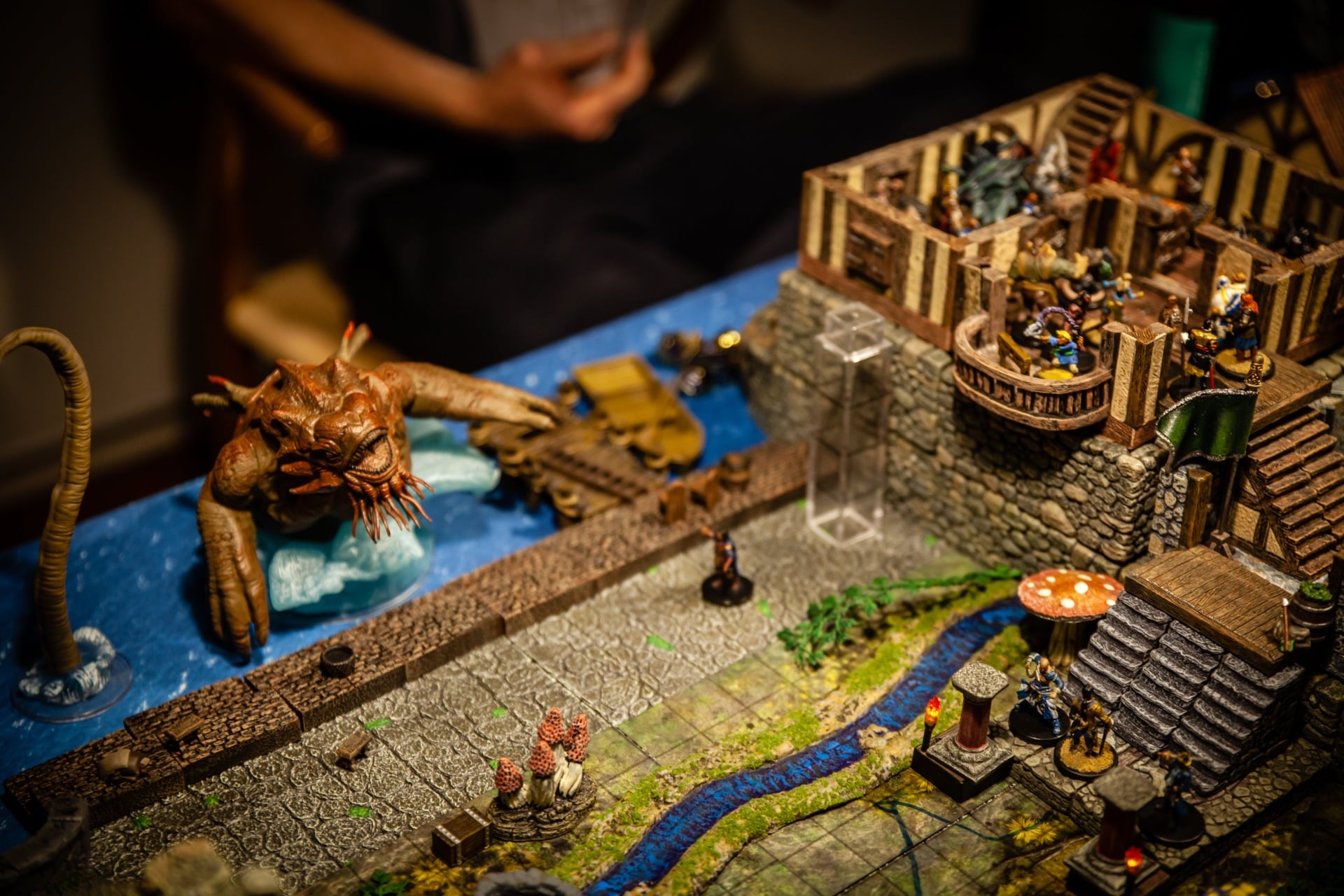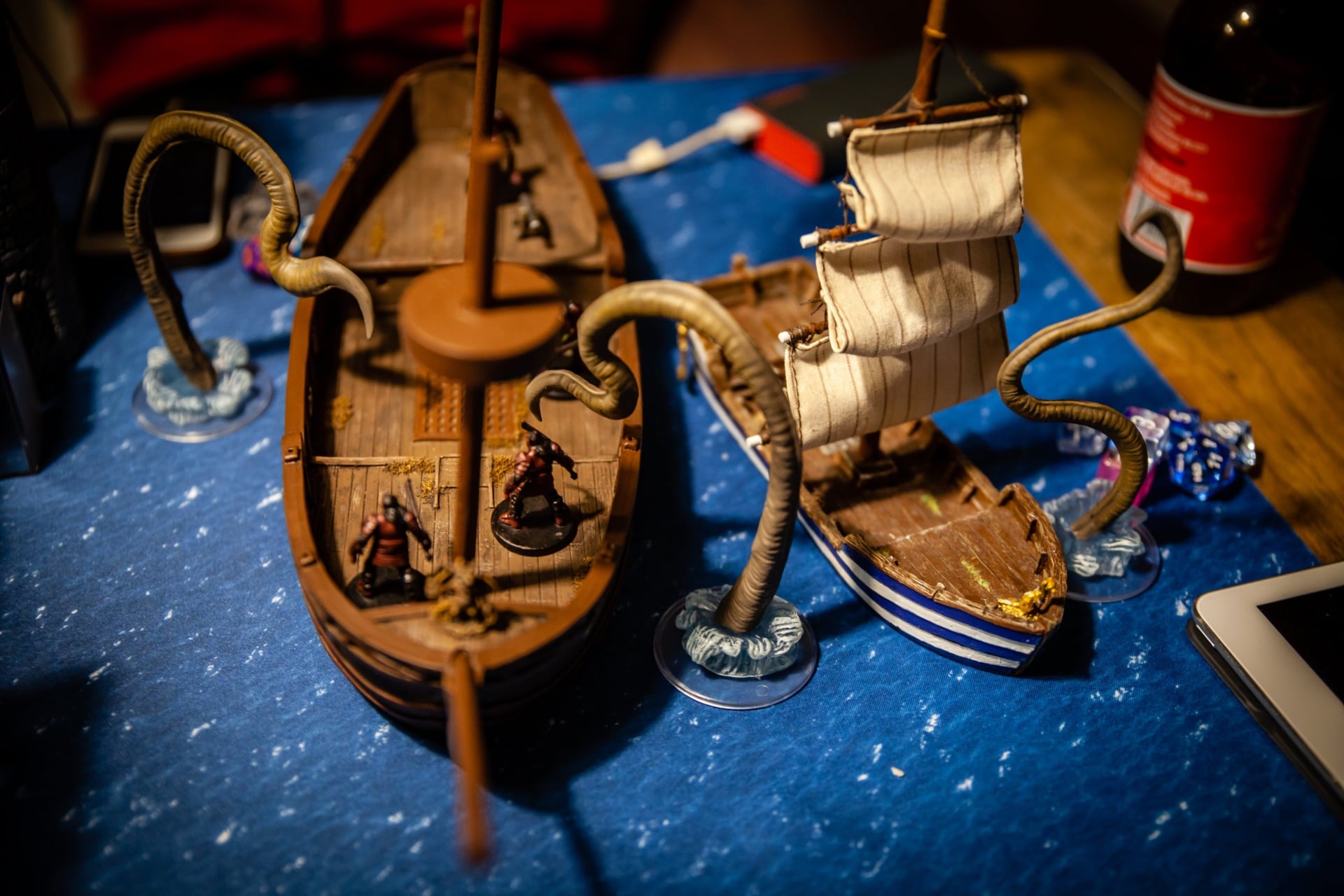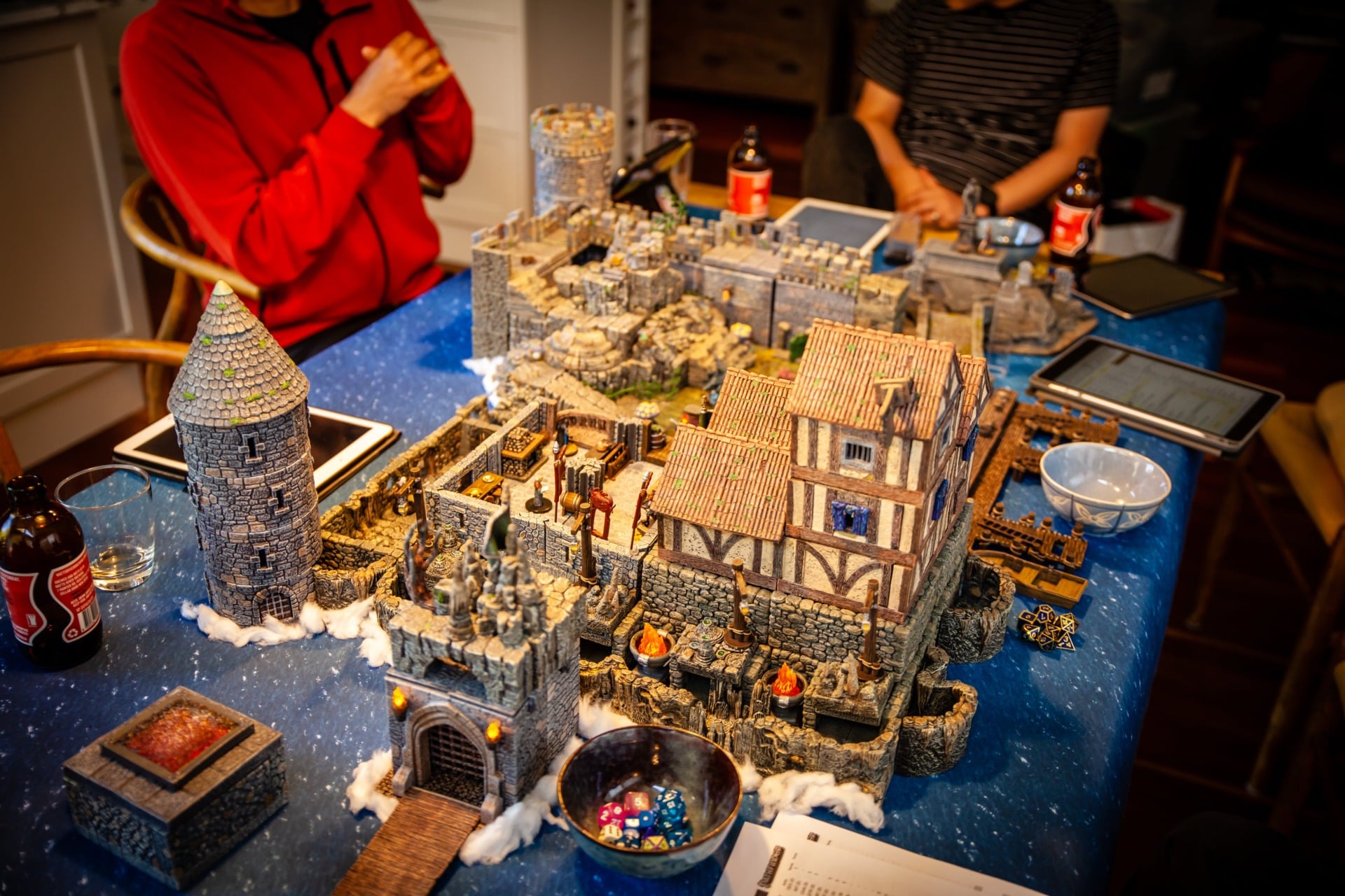 Overseen by DM Paul Houlihan, who also did all the painting (the terrain is a mix of stuff, most of it from Dwarven Forge), the party (Persimmonās Hate) can be seen here wrapping up a 15-hour session to conclude the second of six books in the Skull & Shackles campaign
