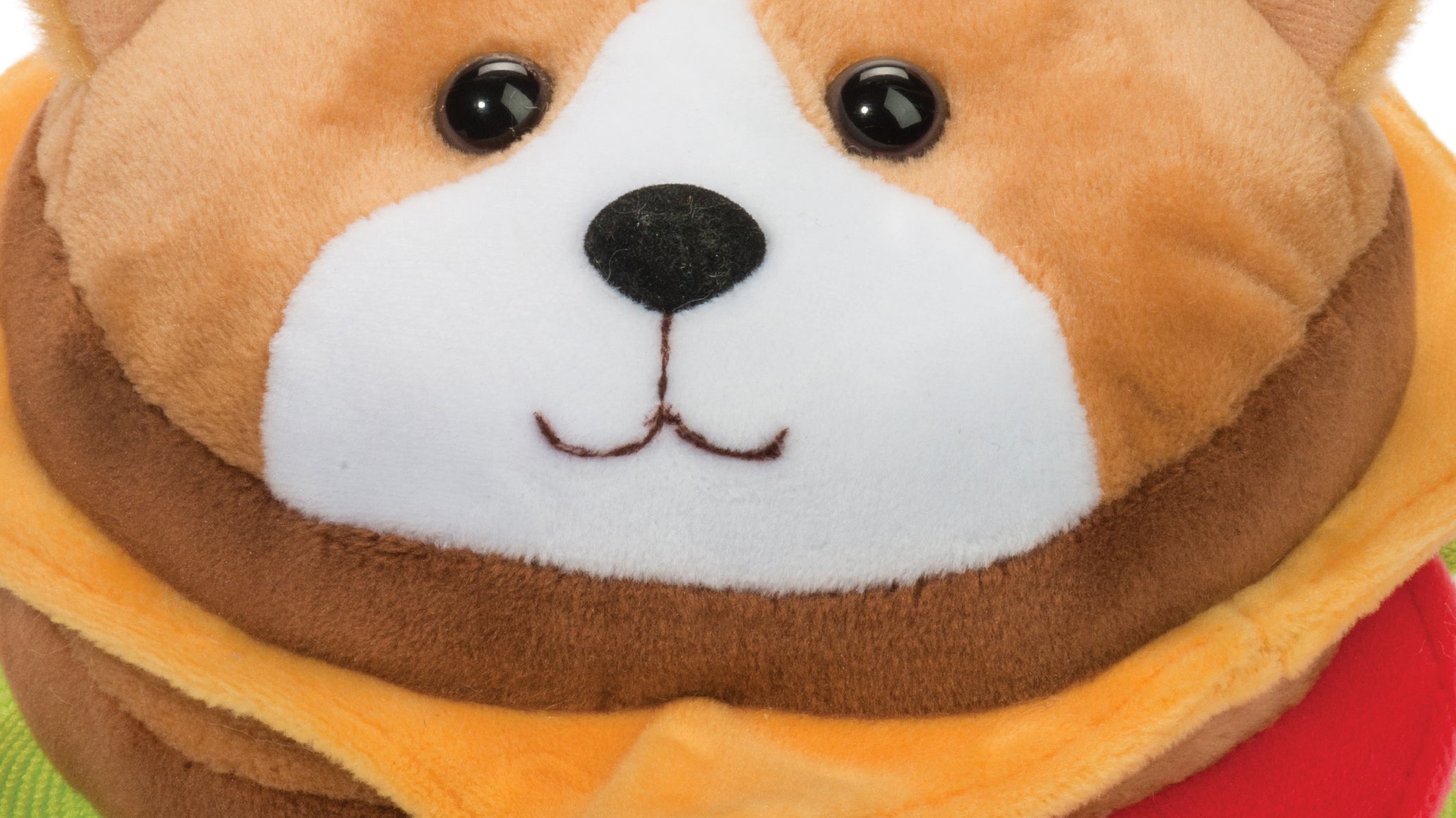 It’s a seven-inch plush double cheeseburger with a corgi face for the top bun, which is completely silly and I love it. It’s part of the Foodie Macaroon line of plushies coming in March from Douglas Toys, a company whose mailing list I’ve been on since they yelled at me for taking photos without permission during my first visit to the New York Toy Fair (they thought I might be a toy spy, which is a real thing). It’s mesmerizing. Look at that face.