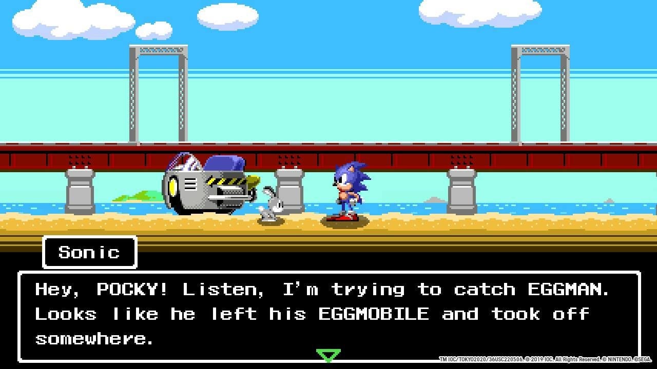 That’s right; along with 21 3D mini-games, including new additions like the simple-yet-satisfying skateboarding and surfing, Tokyo 2020 includes 10 retro-style 2D events. For these special events, Mario, Sonic, and crew are transformed into 2D sprites to compete in mini-games reminiscent of arcade classic Track and Field. These cute throwbacks are included as part of the game’s expansive single-player story mode, which hops back and forth between real-world Tokyo 2020 and a digital version of the Tokyo 1964 Olympic games inside of a handheld gaming system. Eggman and Bowser, never to be trusted, get Sonic, Mario, and themselves trapped inside the game, and the only way out is to collect gold medals. Meanwhile, in 2020, Tails and Luigi team up to try and find a way to rescue their friends. Spoiler: It involves playing Olympic mini-games.