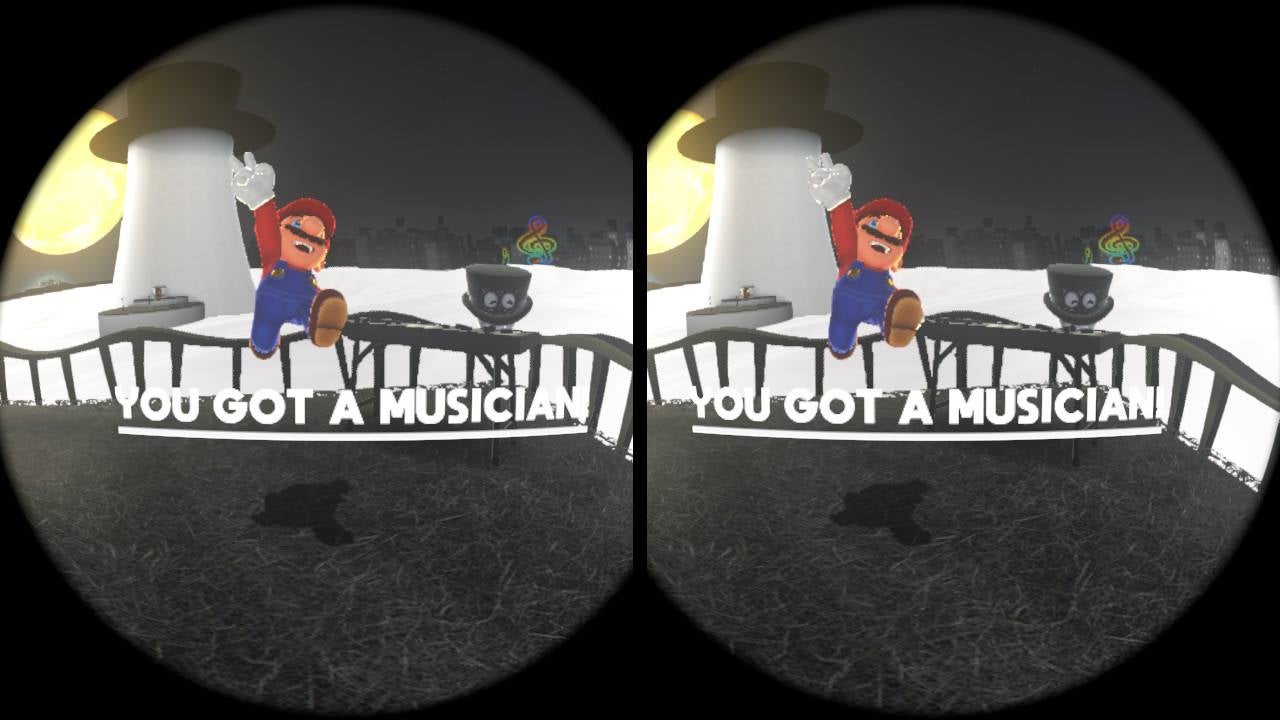 Mario Odyssey’s new VR mode consists of a trio of small custom levels that let you use Mario to quickly collect musical instruments for characters who eventually assemble to perform a special VR concert of the game’s main theme.