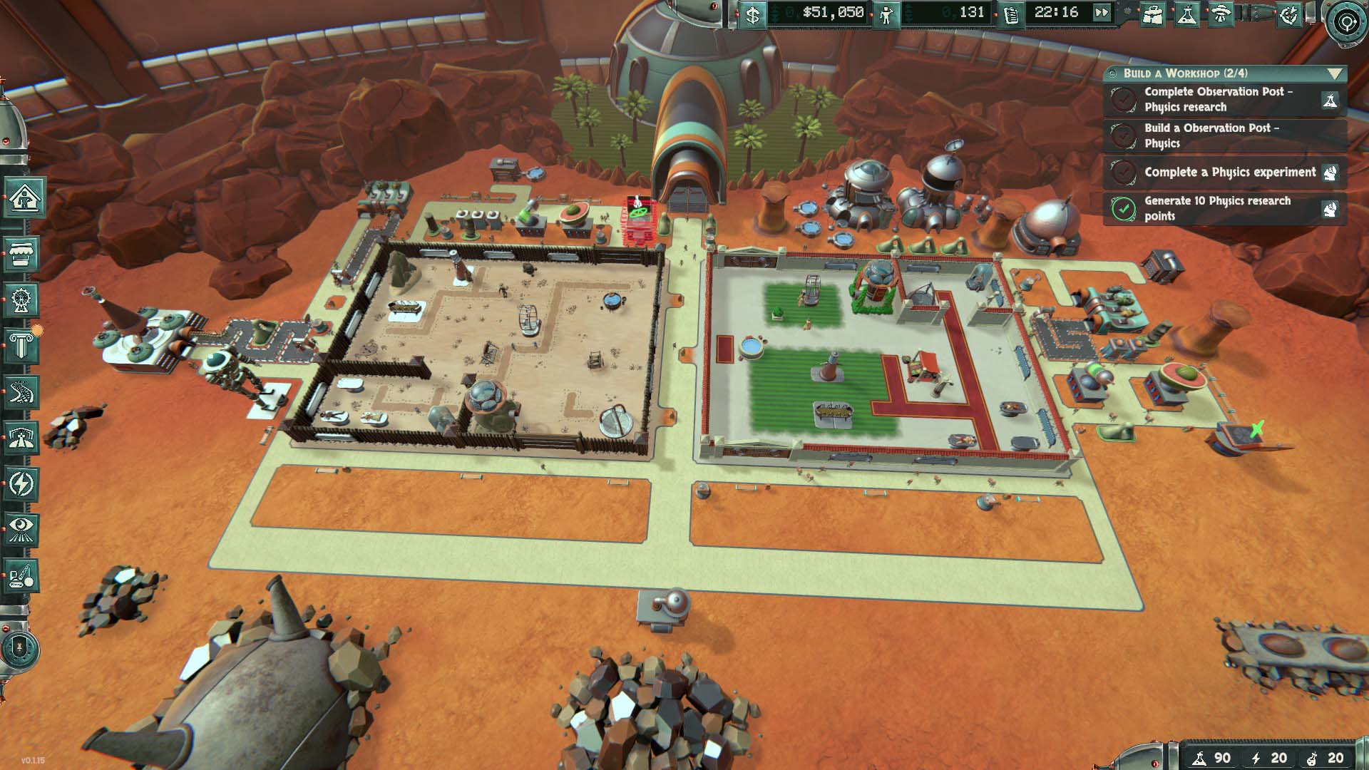 Mars Attracts is currently in early access on Steam, and while I didn’t experience any annoying bugs or crashes while building out my incredible parks across the game’s first few starting zones, I did notice some missing text and a lack of sound effects. There’s just a general sense that the game isn’t finished yet, which is exactly what I would expect from an early access indie game. I also felt like some parts of the in-game economy felt grindy, and it can be annoying managing supplies when it feels like your workers aren’t doing what you expect. So if you prefer your games to be more feature-complete, perfectly balanced, and…well…finished, then you might want to wait.