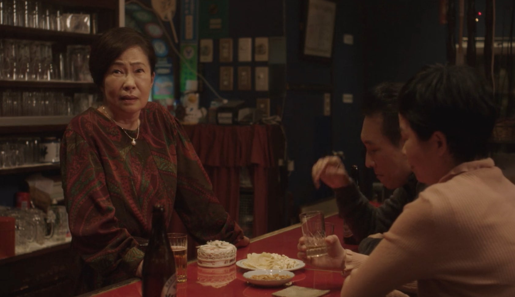 He goes to the diner to have a beer and notices the old woman across from him who’s been going there every day for the past two weeks. Tears form in her eyes as she reveals she’s his mother. She explains the events that led her to abandon him and apologizes. Akai, drunk and upset from work, gets exacerbated by the confession. In a fury, he says, “I don’t have a mother. She can’t call herself a mother, either, because she abandoned me.” His mother nods in plaintive acceptance, pays her bill, and is about to exit. “Red color suits you well,” she says and leaves.