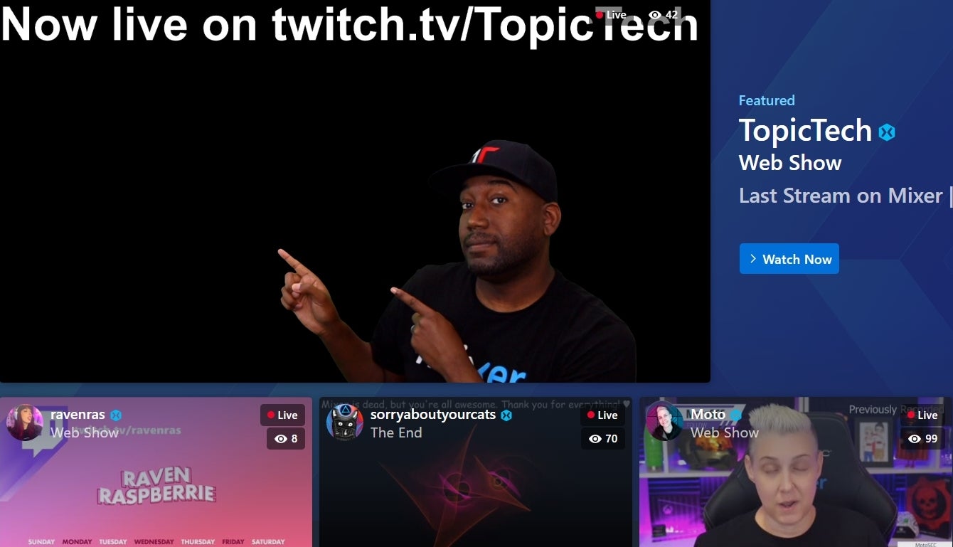 One month after the shutdown announcement, Mixer is a ghost town. This makes sense; as soon as streamers learned that the blue-hued Twitch competitor was not long for this world, they started heading for purpler pastures. Now, while plenty of Mixer channels are technically “live,” many of them are broadcasting reruns or still images that advertise former Mixer streamers’ shiny new Twitch (or, in some rare cases, Facebook) channels. For most of today, it was legitimately difficult to find a truly live channel on Mixer’s front page. In my experience, it was easier to locate 24/7 streams intended to let people sit in chat and mine Mixer points—soon to be unobtainable—in games like Forza and Paladins