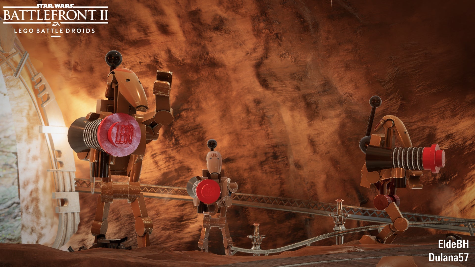 Love it. Sadly it looks like a lot of work for purely cosmetic results, work few are willing to put in, as I could only find one other LEGO mod for the in-game action itself, these LEGO Battle Droids by EldeBH: