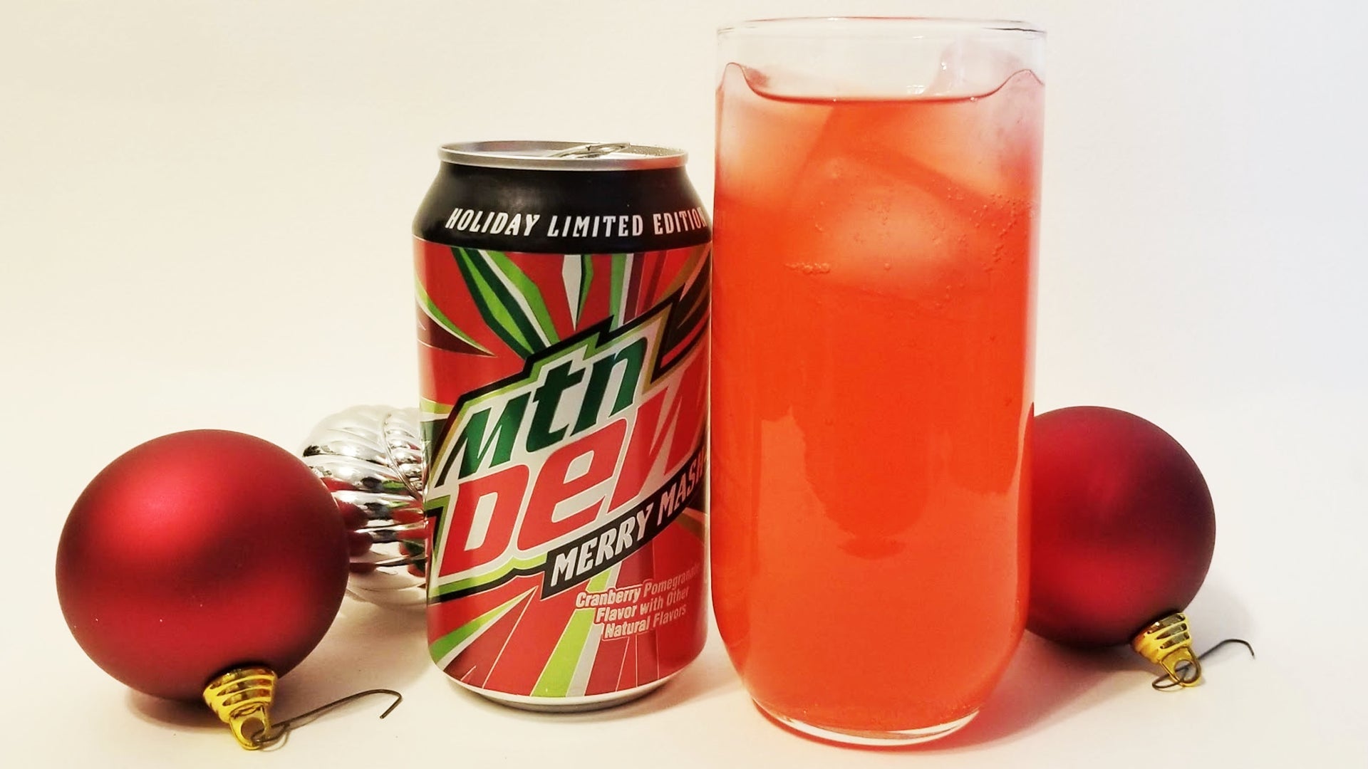 We are only a few weeks into November, which means it’s time to start celebrating Christmas. For some reason. I’m not a big fan of Xmas and seeing Christmas trees and candy canes popping up in stores already makes me hiss like a cat. Really. And to help celebrate the holidays, Mountain Dew has released Merry Mash-Up, a new flavor of their popular soda.