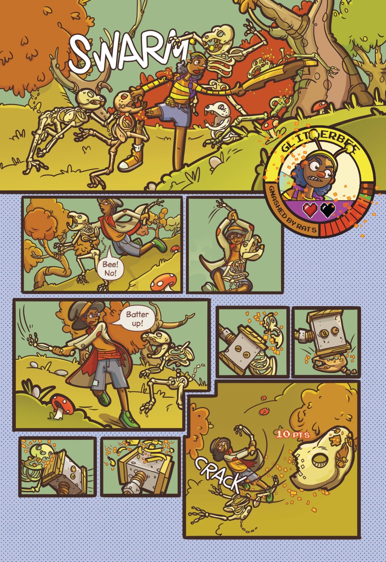 My Video Game Ate My Homework creator Dustin Hansen taps into decades of experience working on games like The Sims, Madden football, and EA’s kid-friendly Street Sports series in crafting this grand comic book adventure. He also taps into his personal experience as a young teen with dyslexia. Dewey struggles with the learning disorder and must overcome his self-esteem and confidence issues.