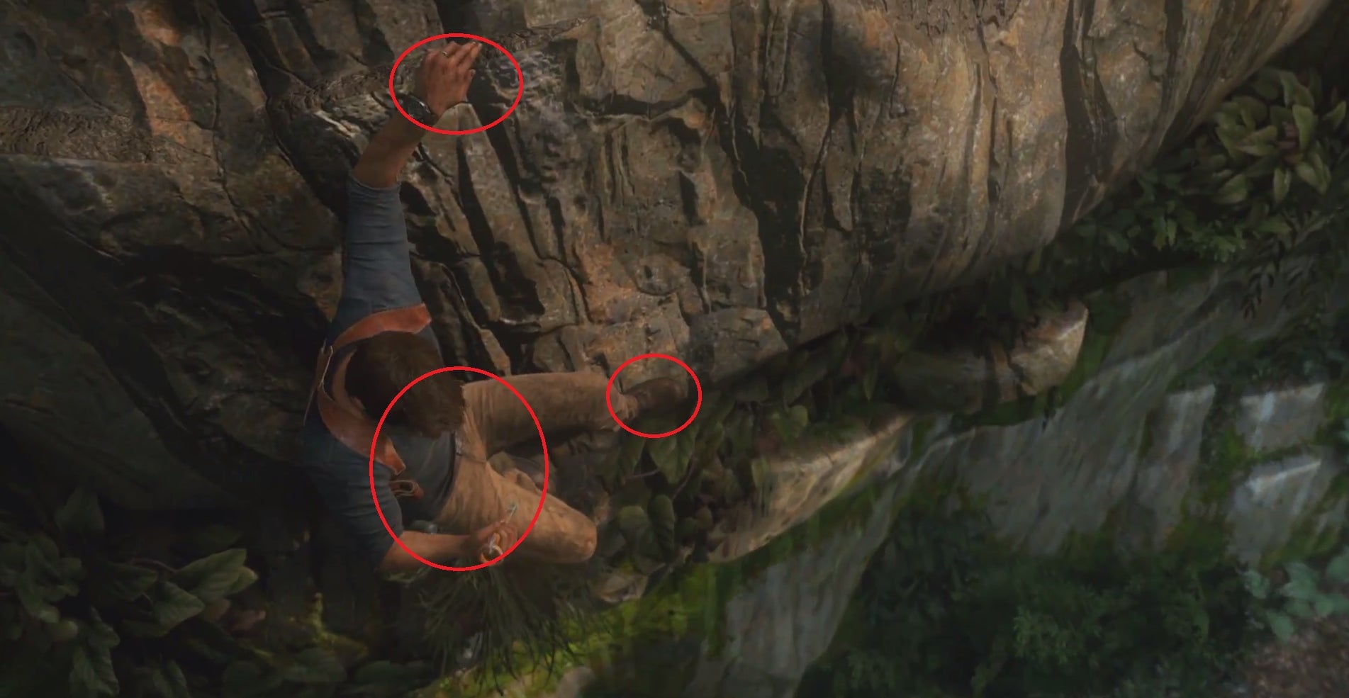 I love the above screenshot â it provides such a clear insight into how Nathan Drake is pulling on the rock, and it pleases me to see that Nathan Drake is climbing open handed. It just goes to show, even if youâre a daredevil treasure hunter, willing to go to strange lands in search of fortune and glory, when it comes to grip positions, it always pays to play it safe.