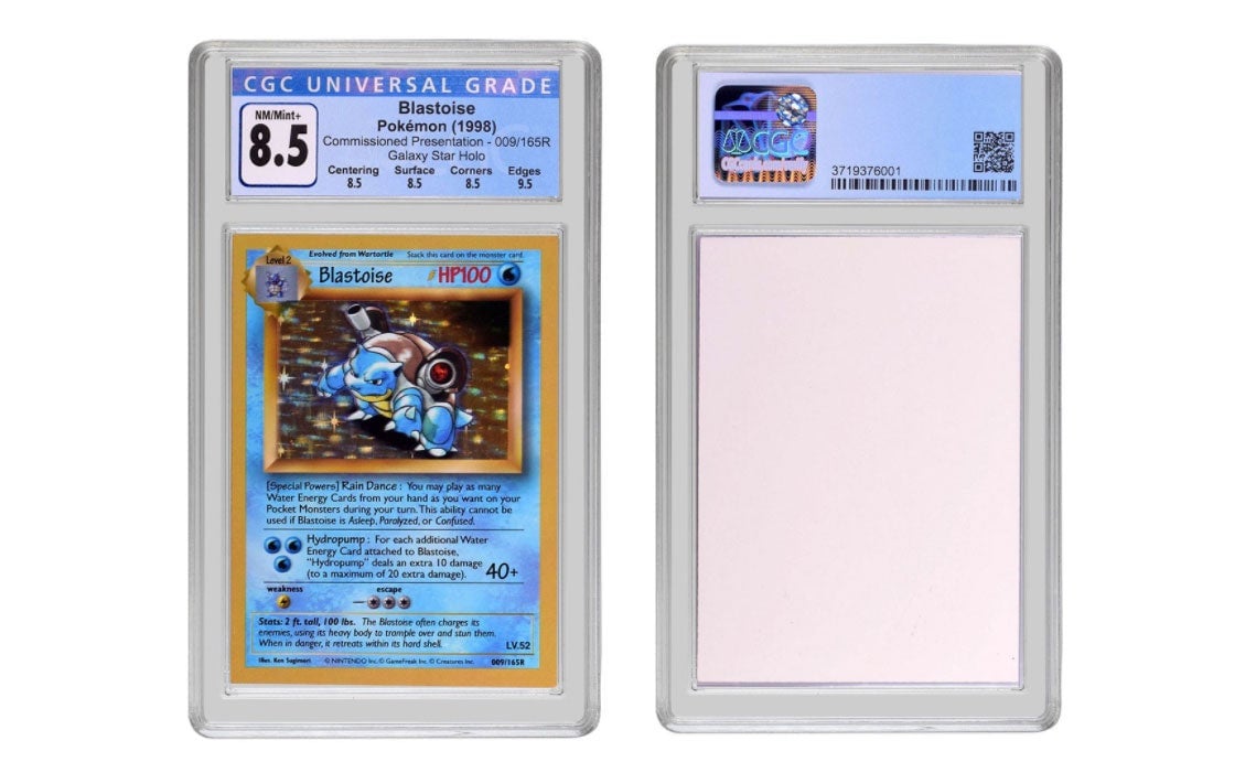 Last week a Blastoise Commissioned Presentation Galaxy Star Hologram card, graded to CGC 8.5 (which isn’t mint, but is close), was sold by the Certified Collector’s Group at auction for $360,000.