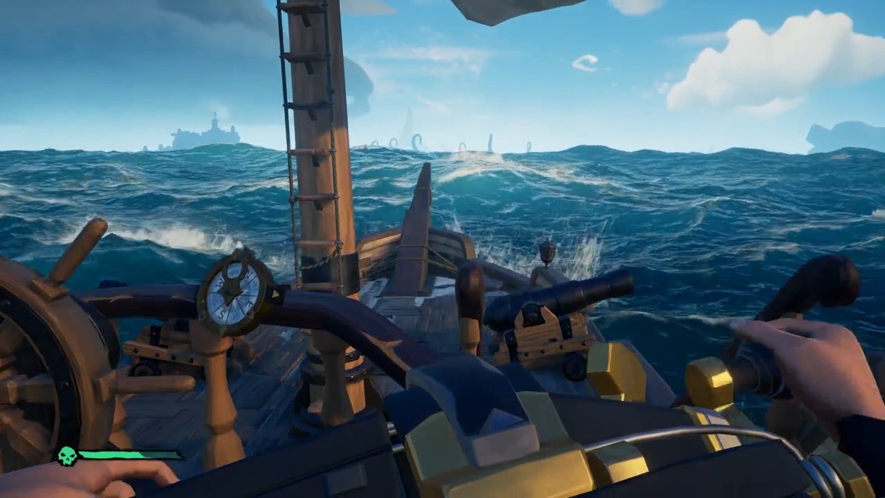 It’s a silly swashbuckling game made for going on treasure hunts and bounty hunts and chicken hunts with friends. Its primary allure is as a pirate-themed sandbox in which you can swordfight with other pirate players and walk away from an afternoon of adventure sporting new inside jokes with your friends. Every part of its design is meant to be experienced in a group setting: ships that must be captained collaboratively, instruments that can be played in harmony with others, and a brig in which to lock rowdy shipmates.