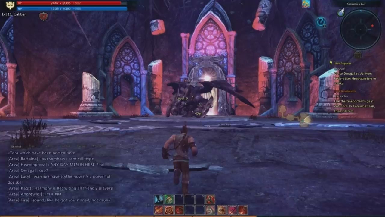 All learning to kick ass, that is. Teraâs group-oriented instances are filled with wonderful opportunities for teamwork to shine. Rooms filled with a hundred weaker minion characters, just waiting for a sexy Sorcerer to come and blast them all to hell while the heavily-armored Lancer keeps their attention.