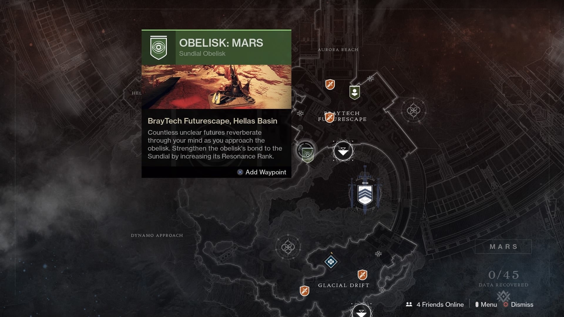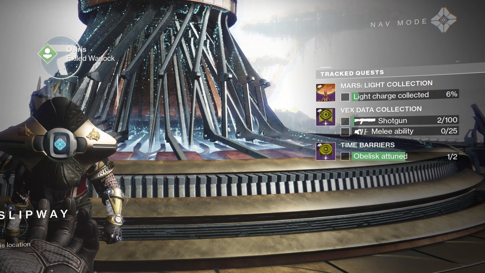 I knew there had to be more Obelisks to activate, though. Sure enough, some other people have had similar problems where the quest for activating the one on Mars doesn’t automatically spawn. After returning to Osiris, who wasn’t marked on the map as having anything else to tell me, he dumped three new quests on me, including the one I needed to get the Mar’s Obelisk up and running.