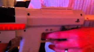 The Sharp Shooter is molded-plastic housing for the Playstation 3 Moveâs controller and navigation controller. The Move controller snaps into the barrel of the plastic gun, its glowing ball jutting from the tip of the gun. The nav controller snaps into the front grip of the gun, letting you easily access the buttons while holding the game in place.
