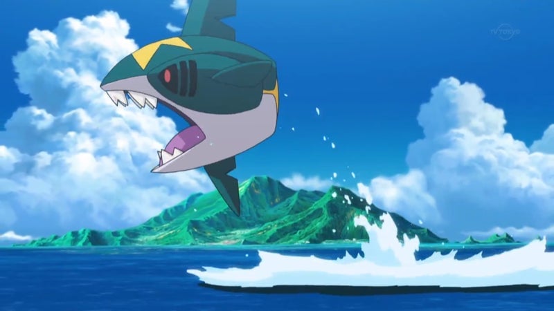 Maybe I’m being a bit crude, but a hole in the rear of creature sounds like it could be an asshole. I’m not a biologist or Pokemon expert, so I might be wrong. Regardless of where the water is shooting from, that kind of speed and power sounds dangerous and scary. This is a not a creature I would want to screw around with during some sort of reality show for Sharpedo Week. Though I would happily watch that show because I bet these things can jump REALLY high out of water. It would make the jumps those leaping Great White sharks pull off look like nothing.