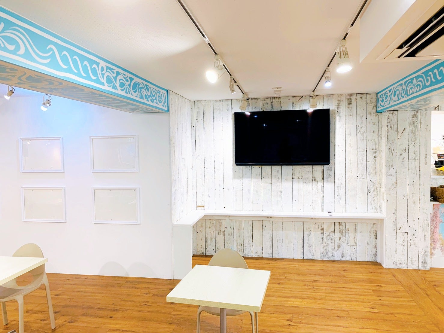 Tables are spaced two meters apart, and there is free WiFi, a TV, and electrical outlets.