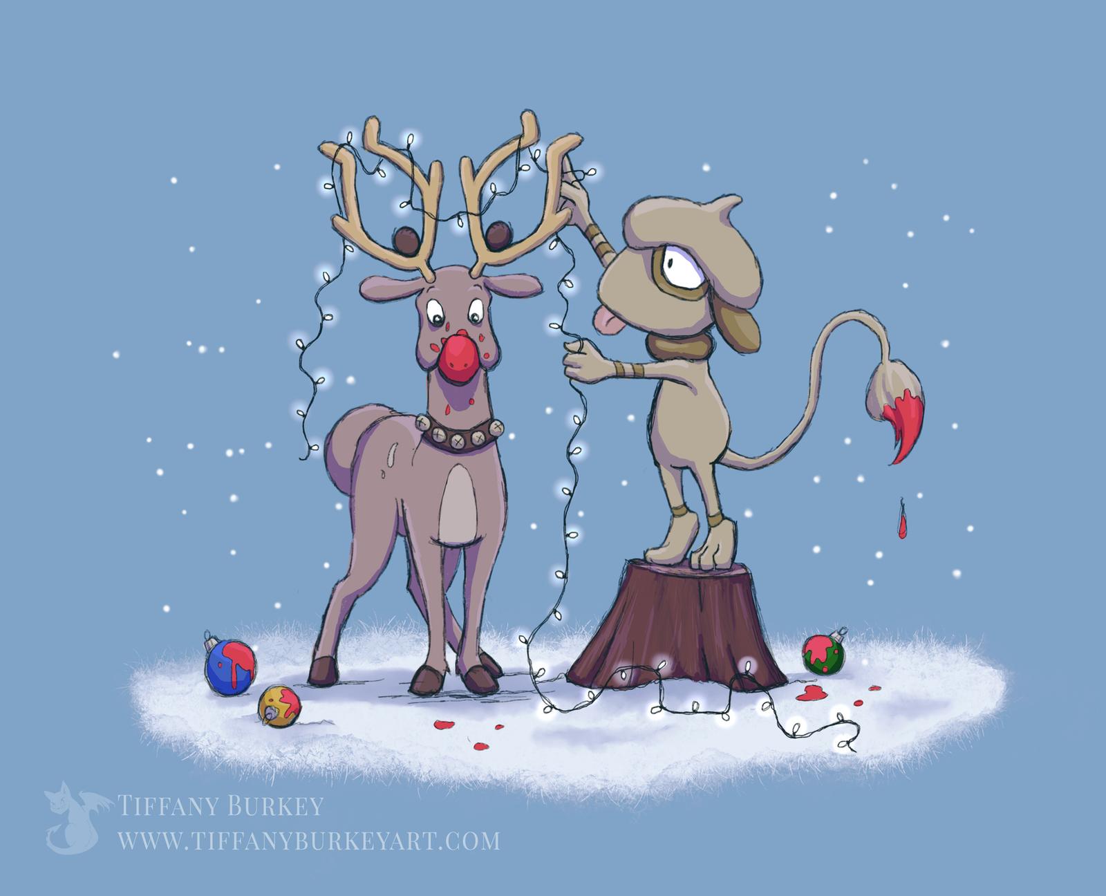 There were quite a few festive images of Stantler floating around on the internet, but this one is my favorite. Not sure why this Pokemon thinks Rudolph has lights around his antlers, but the Stantler is putting up with it. For now.