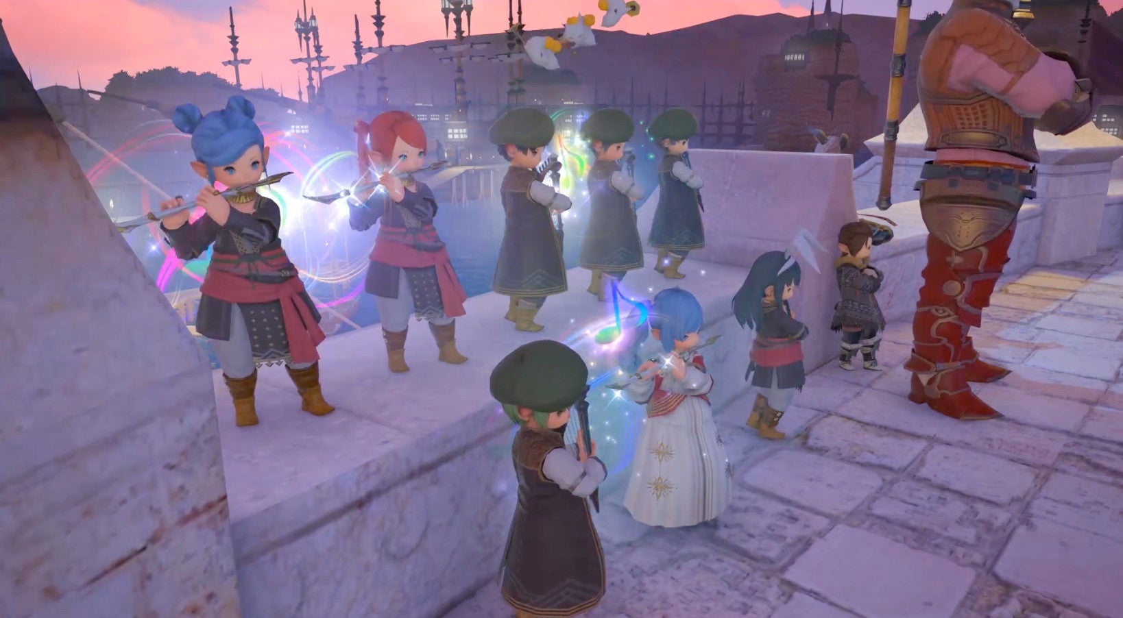Bards have been able to play music for a few years now, to the delight and dismay of players everywhere. There are incredibly skilled bards. There’s that one guy playing a single “emergency note” in the middle of the market. If you’re lucky, you can find full bands of traveling minstrels. That was my luck last night walking in the main square of Limsa Lominsa, one of Final Fantasy XIV’s major cities. A small crowd was forming, and a group of impeccably disciplined bards began to play. It was great. Probably one of the best things I’ve encountered in the game so far.