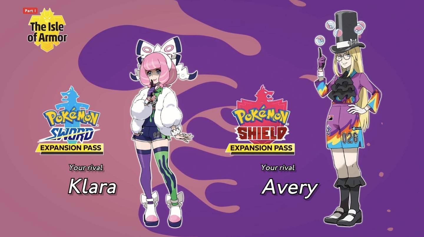 The upcoming Pokémon Sword and Shield DLC, The Isle of Armor, will feature two new rivals exclusive to each of the games. Sword will get Klara, who specializes in poison type Pokémon, while Shield will get Avery, a Psychic-type gym trainer. I have Shield, and while Klara is demonstrably cuter than Avery, I can’t wait…