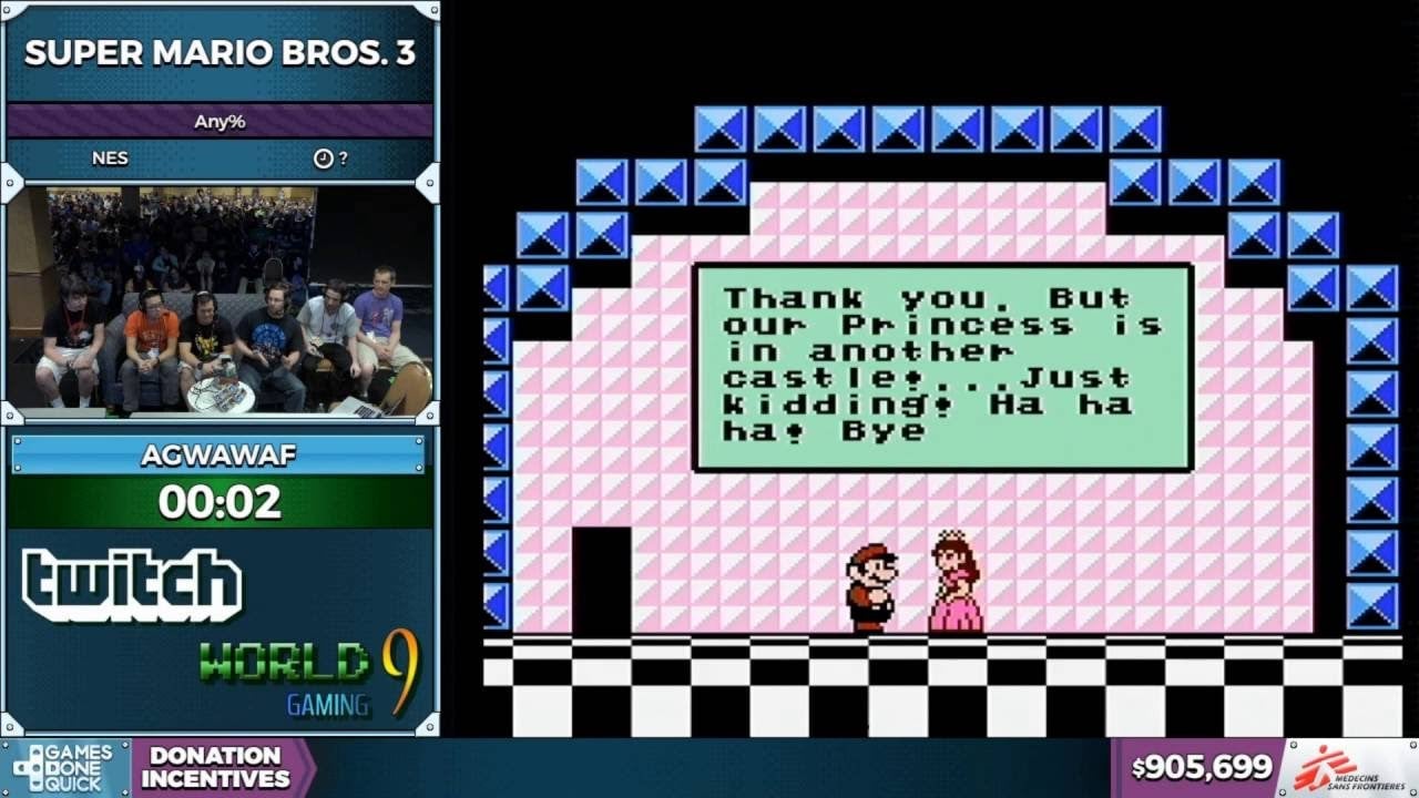 Yesterday’s tool-assisted speedrun (TAS) block at Summer Games Done Quick ended with a Super Mario Bros. 3 run that lasted barely longer than a blink. The ridiculously rapid run is the result of a newfound glitch discovered by TAS speddrunner ais523, which basically involves pressing buttons at an extremely fast rate—some 6,000 times a second.…