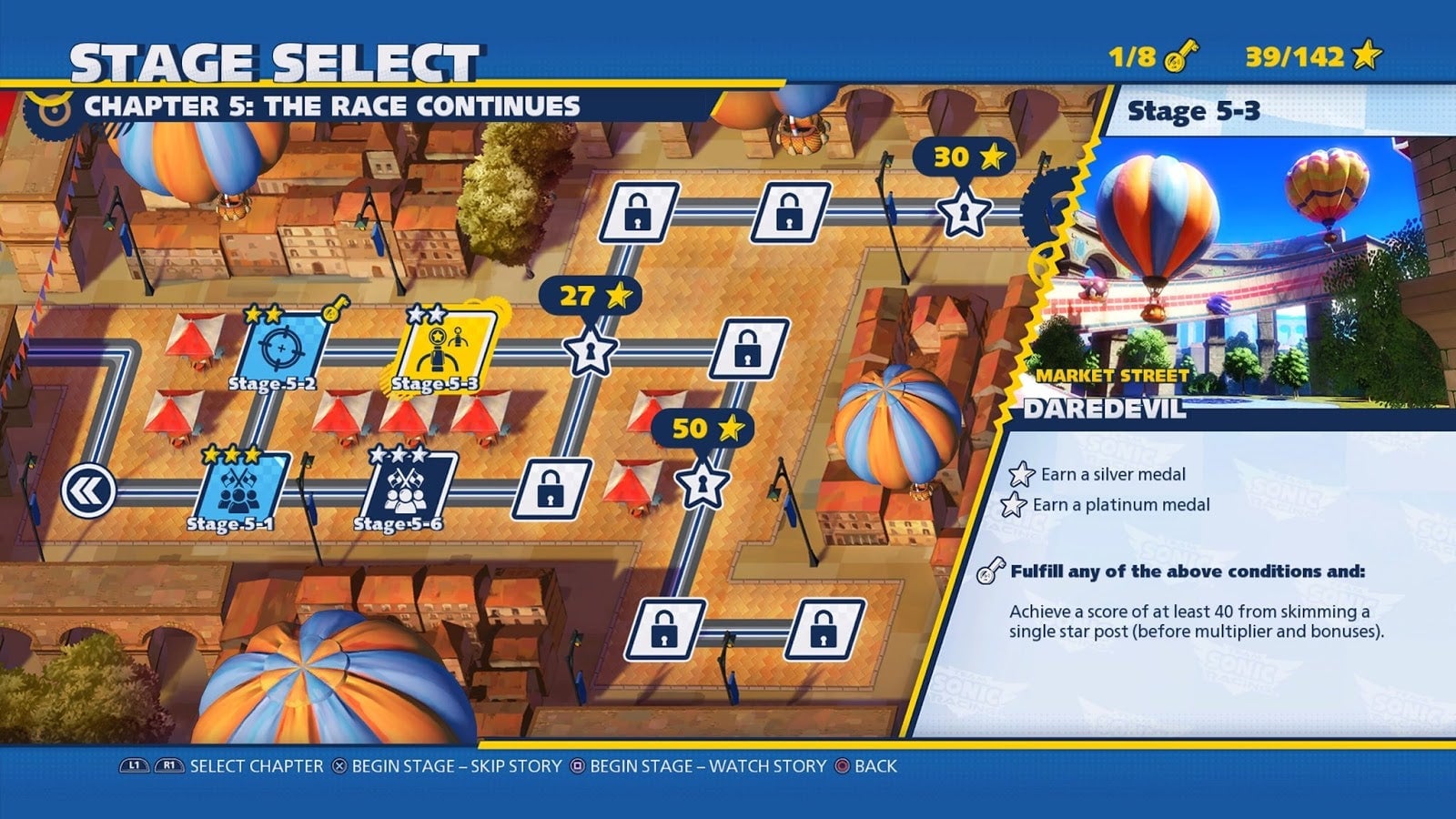 I absolutely hate Daredevil races. Presented with little explanation, Daredevil races task players with drifting past slalom-style pylons. One side awards the player with points. The other side gives less points but creates a score multiplier that slowly drains as the player drives along the track. I butted my head against Daredevil races again and again, never achieving more than a bronze, the lowest medal possible. I avoided the event type whenever I could. Then, in chapter six of seven, I encountered a Daredevil race that required me to get a silver medal or higher to progress. I threw myself against that race for an hour. I emailed Sega PR to see if the developers had any tips—something I have never had to do before.