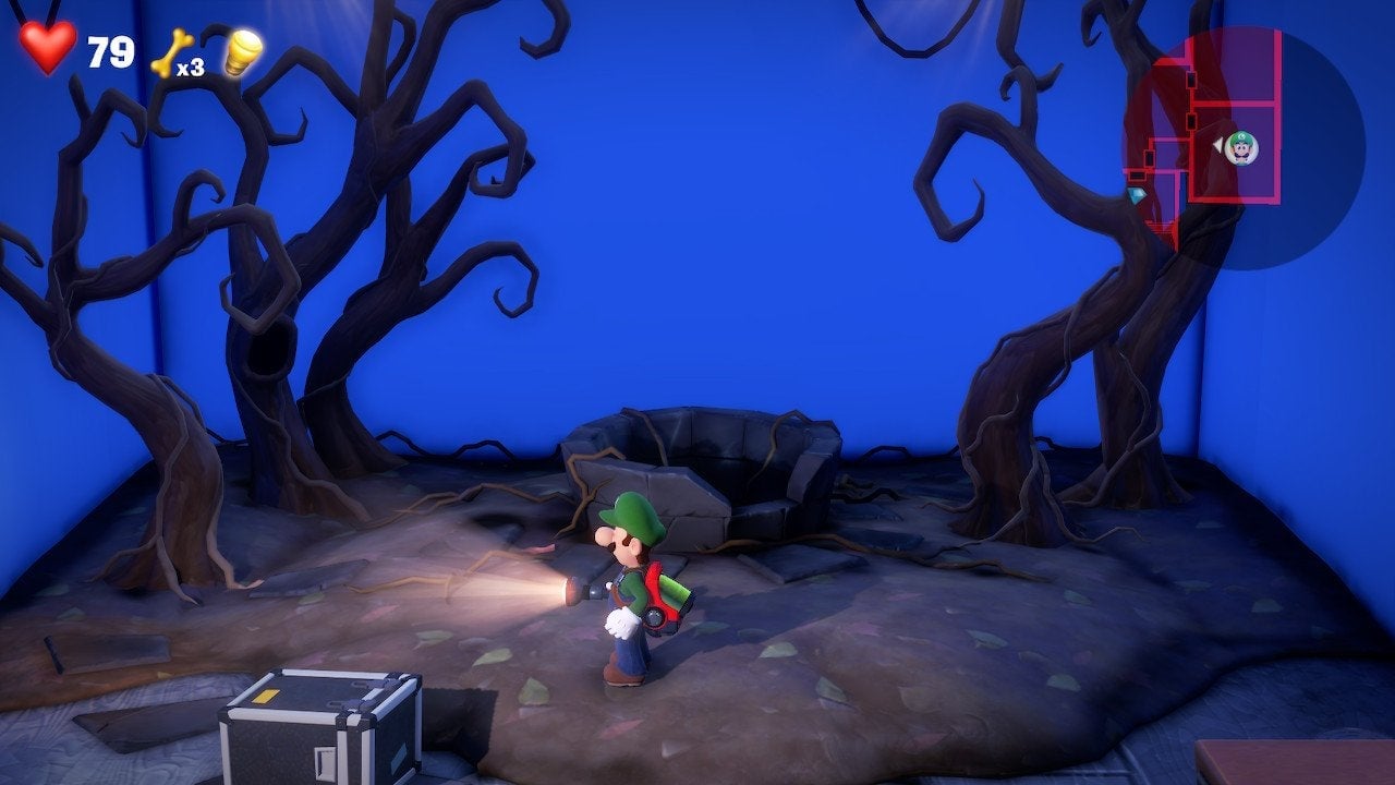This is Morty and unlike other ghost bosses in the game, Morty doesn’t attack you or steal anything from you. He just cries about his missing red megaphone. Luigi feels bad and decides to help Morty. To help, Luigi has to visit each film set, grabbing different elements, like a torch, to eventually solve the main puzzle and return the megaphone to Morty.