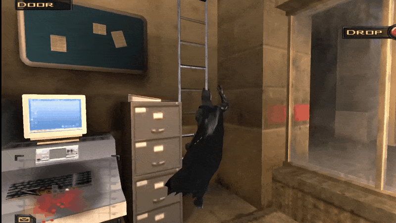 Not even Batman is immune to looking weird while making his way up a digital ladder