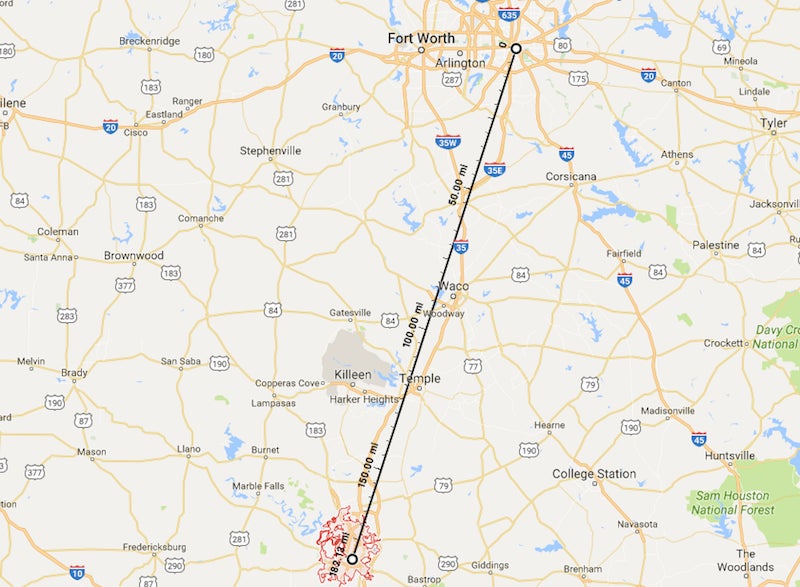 Charmeleon to Charizard: 300 km (the distance from Dallas, TX to Austin, TX)