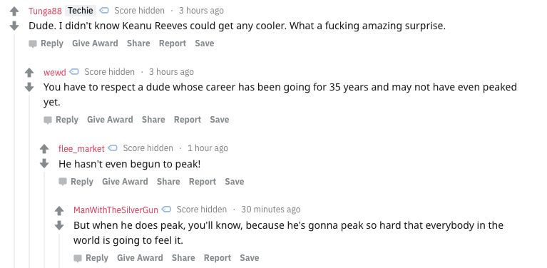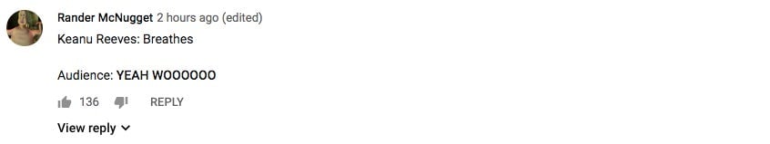 I couldn’t handle it during our liveblog, the audience couldn’t handle it in the theater, as evidenced by the guy who shouted out “You’re breathtaking” while Keanu was doing his spiel, and the internet definitely couldn’t handle it.