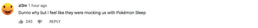 Me: Watches Pokemon press conference announcing Pokemon Sleep, a Pokemon game that tracks sleep and rewards you for a goods night's rest