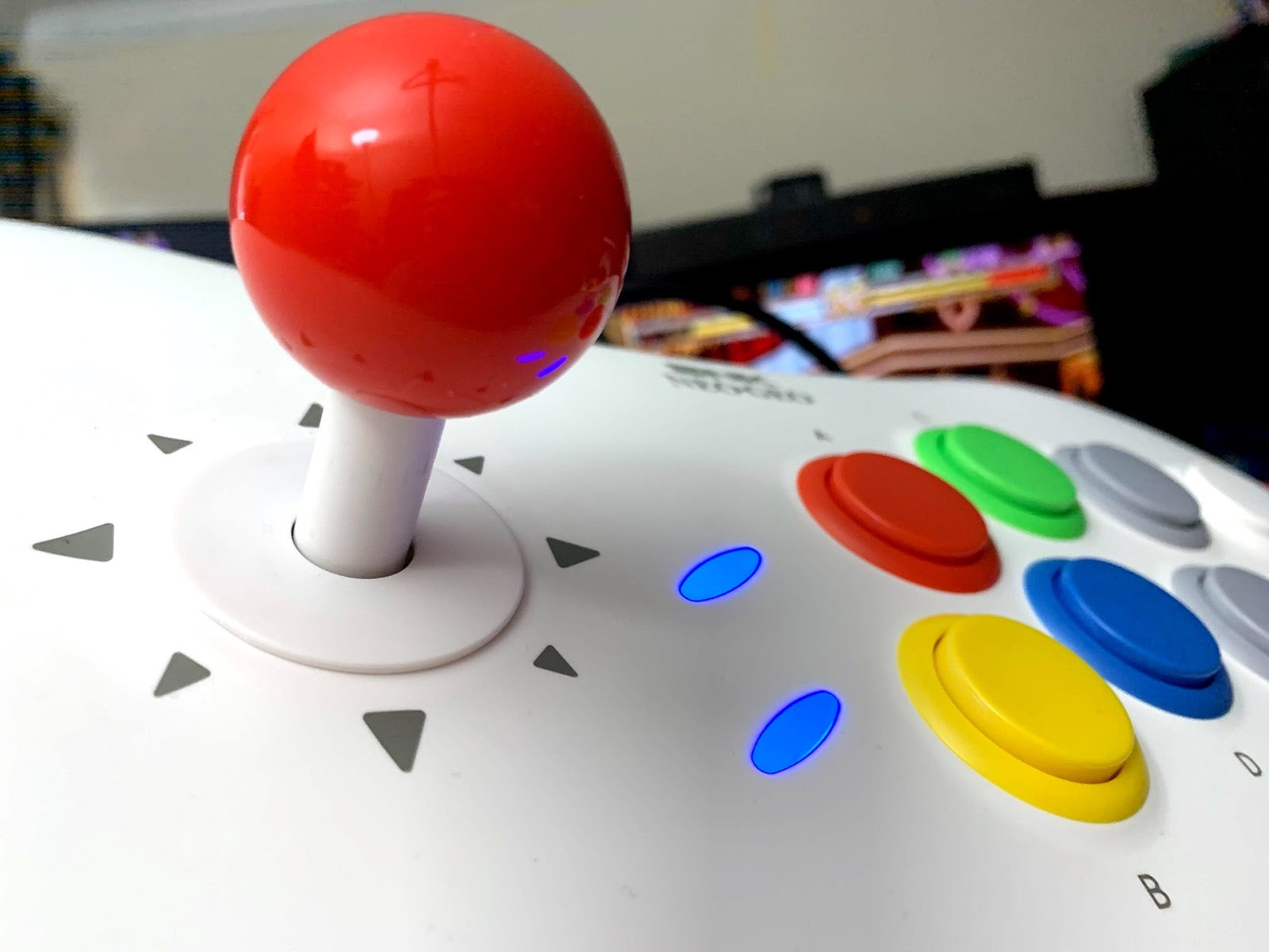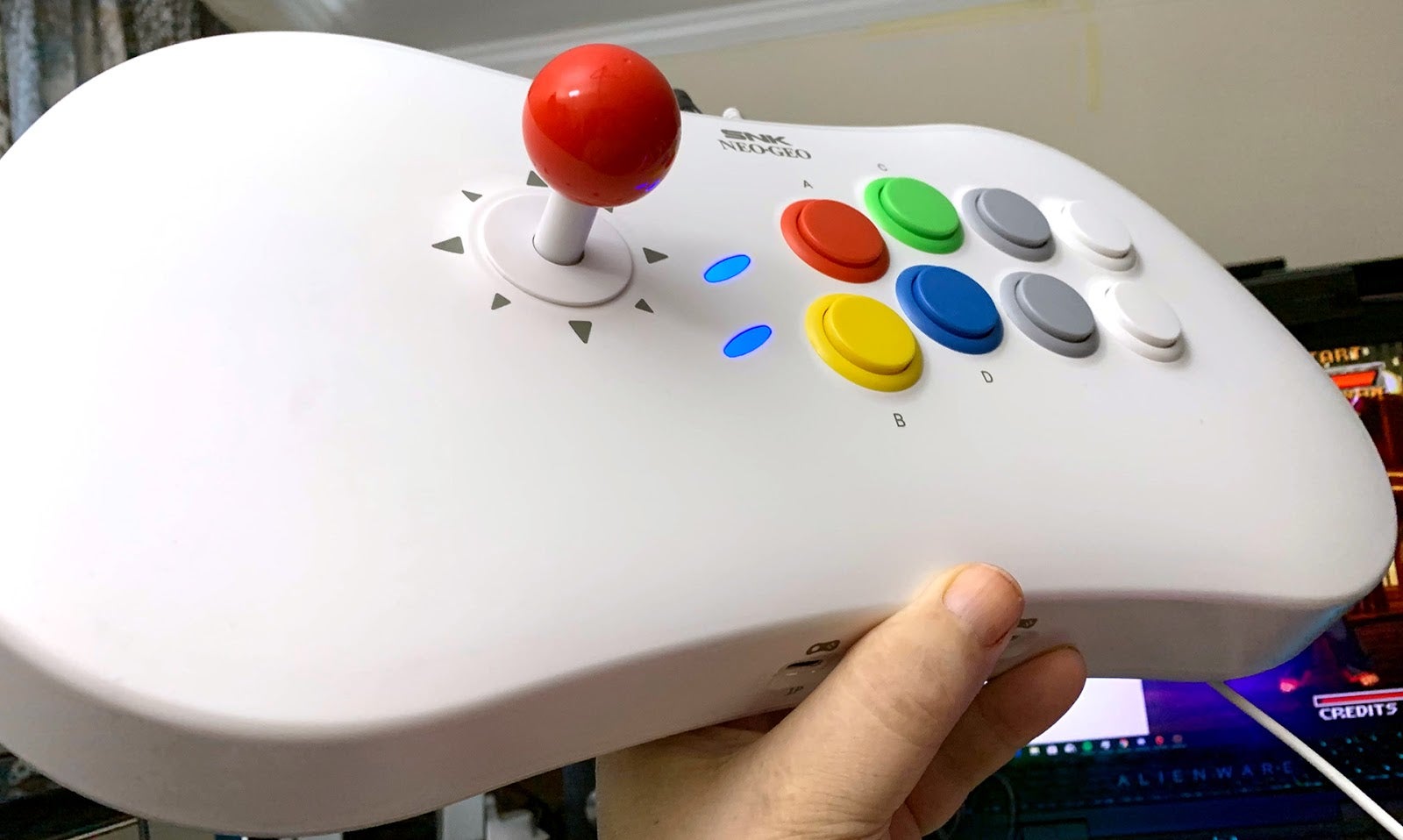 I can’t get over how pretty the Neo Geo Arcade Stick Pro is. The curvaceous white housing, the brightly colored buttons, the candy-apple-red joystick—it’s just so pleasing to my eye. It’s almost more fun to look at than it is to use.