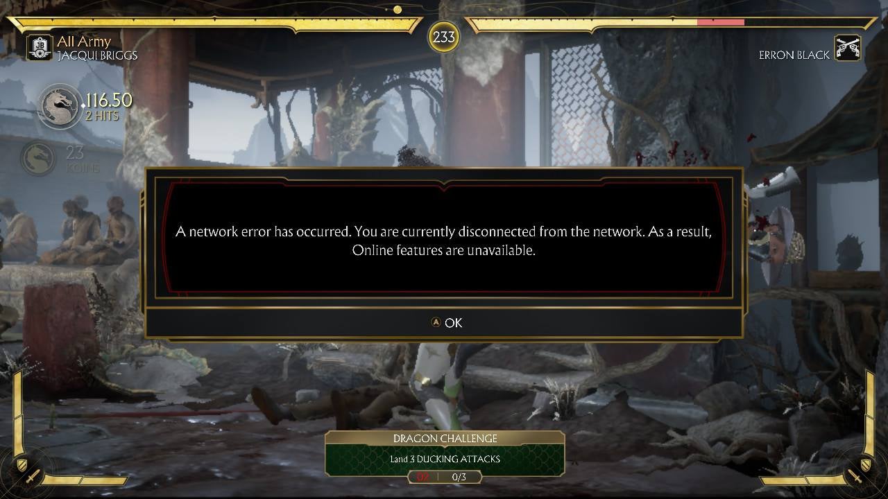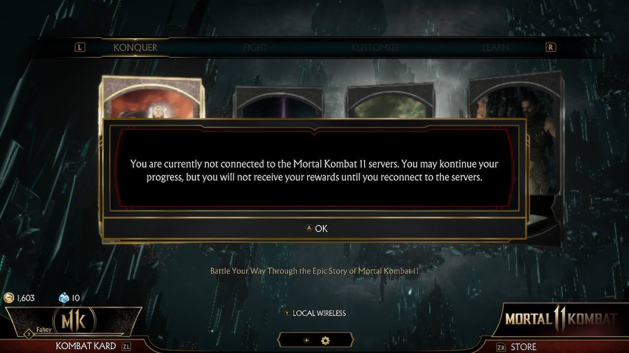 If a player disconnects while playing Mortal Kombat 11, they are warned that they will not earn rewards for progress until they are reconnected.