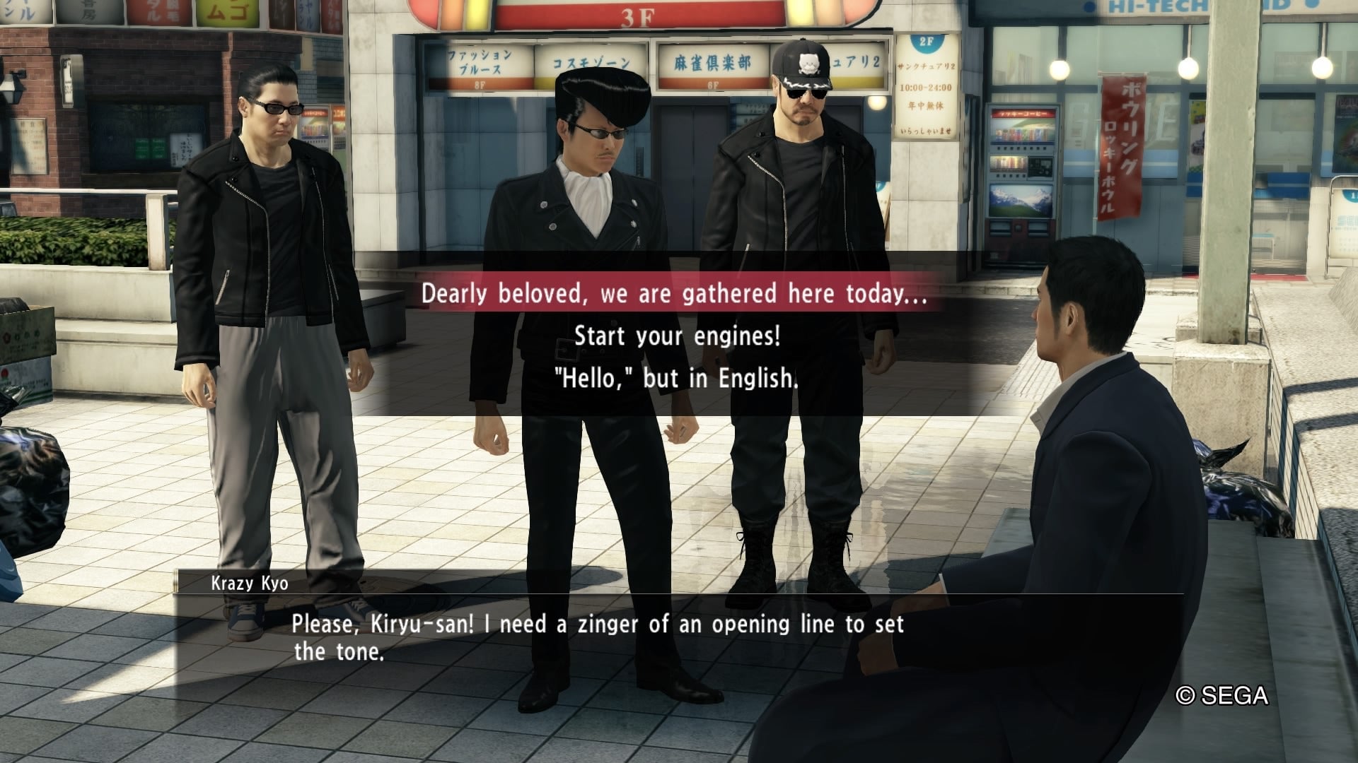 But not all the sidequests are so lurid, even if they are equally quirky. One of Kiryu’s more amusing sidequests involves a thug with a bird-like hairdo who bumps into you and can’t make up his mind whether he should be polite and apologetic, or rude and belligerent. Follow him to the Theater Square, and you’ll spot a group of fans awaiting a popular band that do the “Yanki” style. You’ll spot the hooligan from before, whose name is Krazy Kyo. He reveals he’s part of a band that jokingly dressed up in the Yanki style then suddenly became popular due to their new personas. They have no idea how real Yankis (which are kind of like delinquent youths) act and need to get tips from Kiryu so that they don’t disappoint their fans. This essentially comes down to you acting as a Yakuza coach and teaching them how to react to their fans. Their impromptu lessons on how to more authentically represent gangsterhood are in part poking fun at musical boy bands that masquerade their “toughness,” but also show how real yankis need role models they can relate to as well.