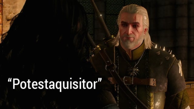 At one point in the story, Yennefer gives Geralt a device called a Potestaquisitor. Say it out loud: āPoh-tes-ta-quiz-itor.ā Not only is that maybe the best name for a magical device Iāve ever heard, it also leads to this outstanding conversation: