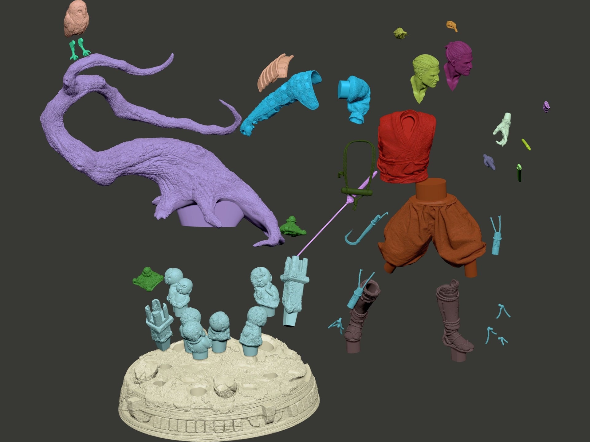 Above are obviously shots of the finished product, but I thought it’d be cool to see some of the work that went into designing the character and statue as well, so below are some images ranging from concept art to early modelling work.