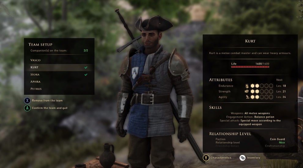 Staff writer Heather Alexandra described her mixed feelings about Greedfall in a lengthy Kotaku review, but one of its shortcomings is very clear: its menu text leaves something to be desired. Here we have Kurt who is probably a totally capable companion but we’ll never know because the small bolded text describing his unique skills smudges together into oblivion.