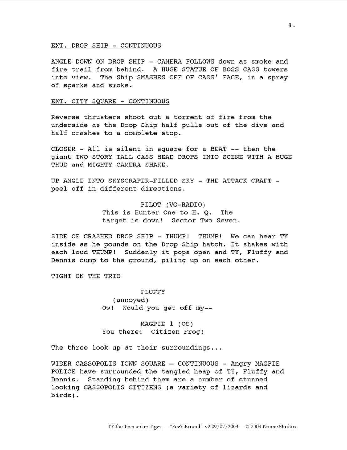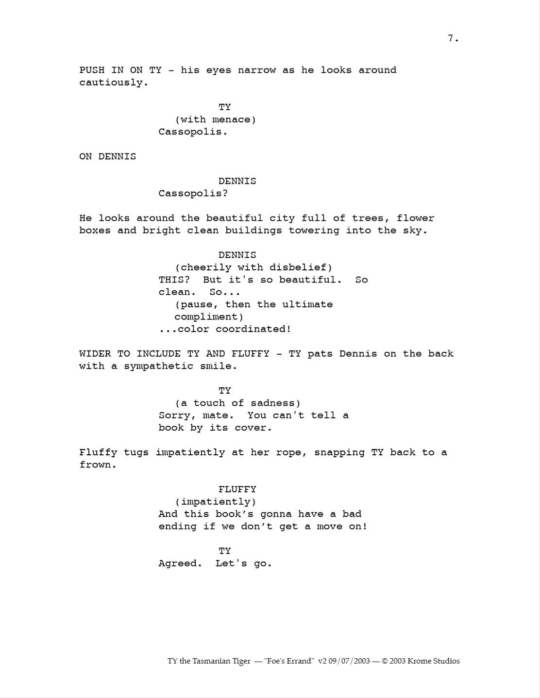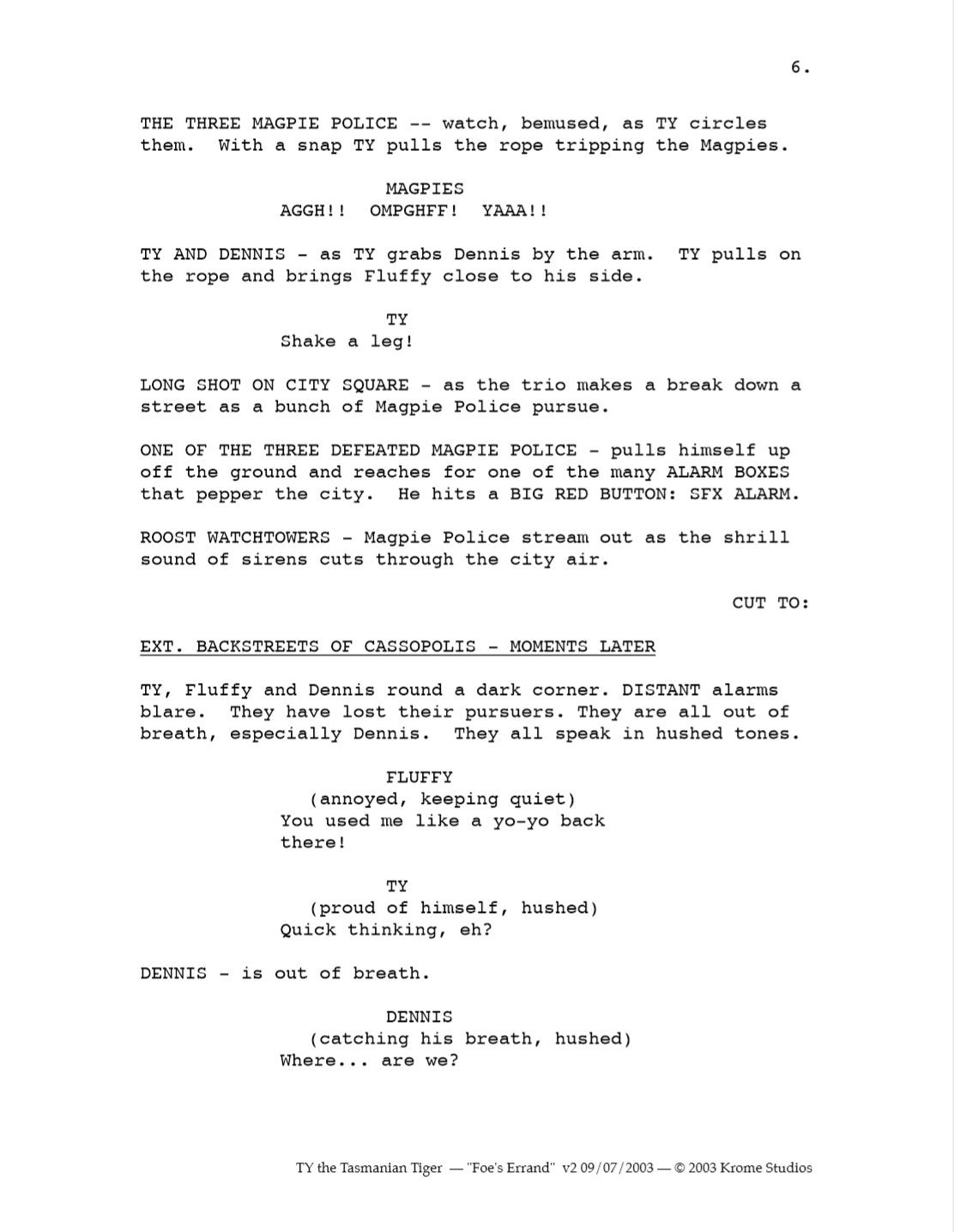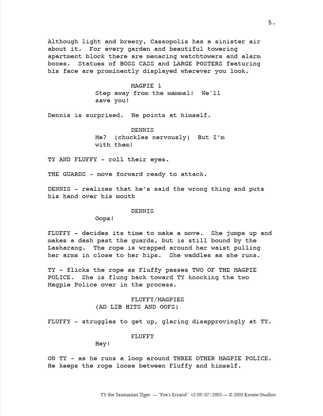 It’s an interesting peak into what could have been. Obviously the scripts would have been developed further if the series had gone into full production, but as it was this was enough to get the series optioned,” Passfield said. I tried to contact Lane Raichert, the voice director on all three Ty the Tasmanian Tiger games and developer of the TV show, but wasn’t able to get in touch before publication.