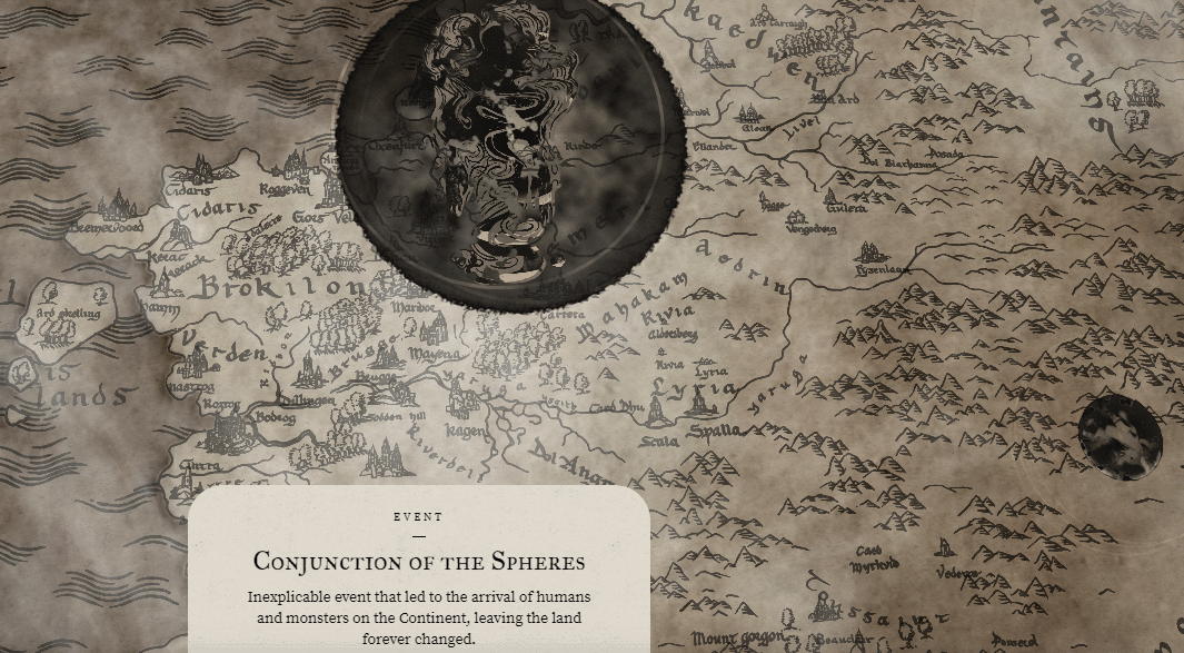 More helpful are the puddles of black ink that blow up when you click on the Conjunction of the Spheres, which help neatly illustrate the sort of inter-dimensional cataclysm people in the world of The Witcher think brought humans and monsters into a continent previously inhabited only by elves, dwarves, and the like. The timeline doesn’t really go into events not referenced in the show, but it does a great job of clarifying everything else.
