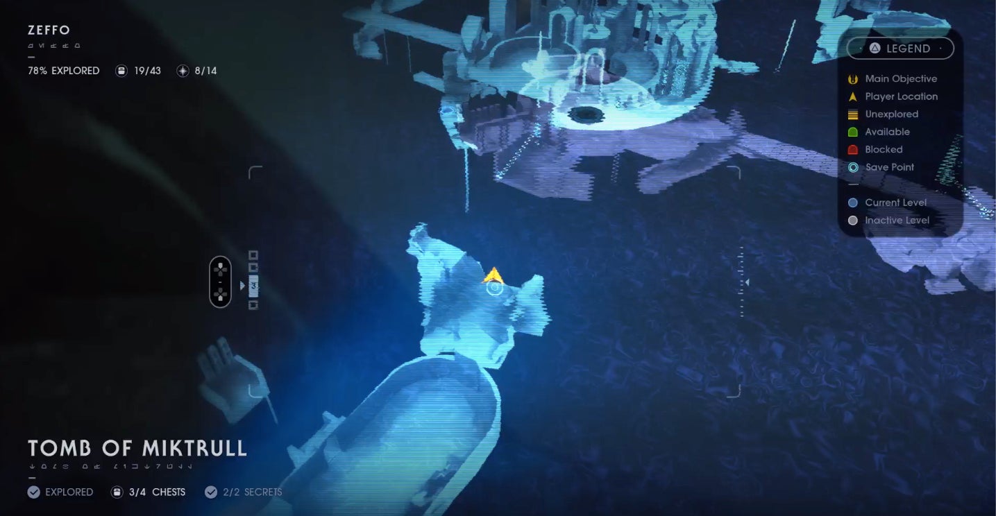 I discovered this place because I spotted a little green icon on my map, a hint that there might be some uncharted treasure for me to find down in the vast Tomb of Miktrull, where I’d been adventuring for the past couple of hours. Exciting!