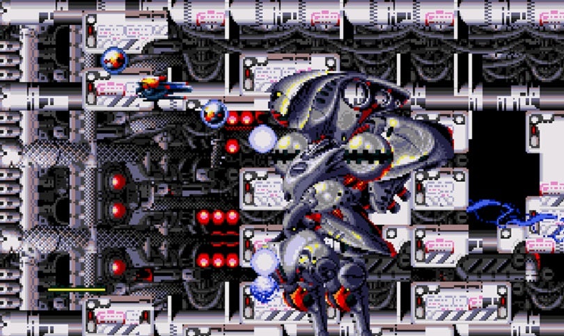 What makes a shooter great versus frustrating are its controls and available arsenal. Fortunately, TFIVās controls are tight and the developers let you adjust your speed on the fly, accelerating or decelerating depending on your preferences. A weapon bar is also available, similar to the Gradius series. While it doesnāt offer the same level of customization, at least you only lose your selected weapon when you die rather than the entire arsenal. The best upgrade by far is the claw, which releases drones that rotate around the Rynex and mimic its attack. My personal favorite weapon is called the Hunter which does exactly what its name implies: fire photon energy bursts that track down enemies. Thereās also a shield to buffer defenses and stave off death for another collision or three. A very nice touch for the sound effects is that whenever you grab power-ups, thereās a voice that tells you what you got. Itās a bit hard to understand, but also very 16-bit era in the best way possible.