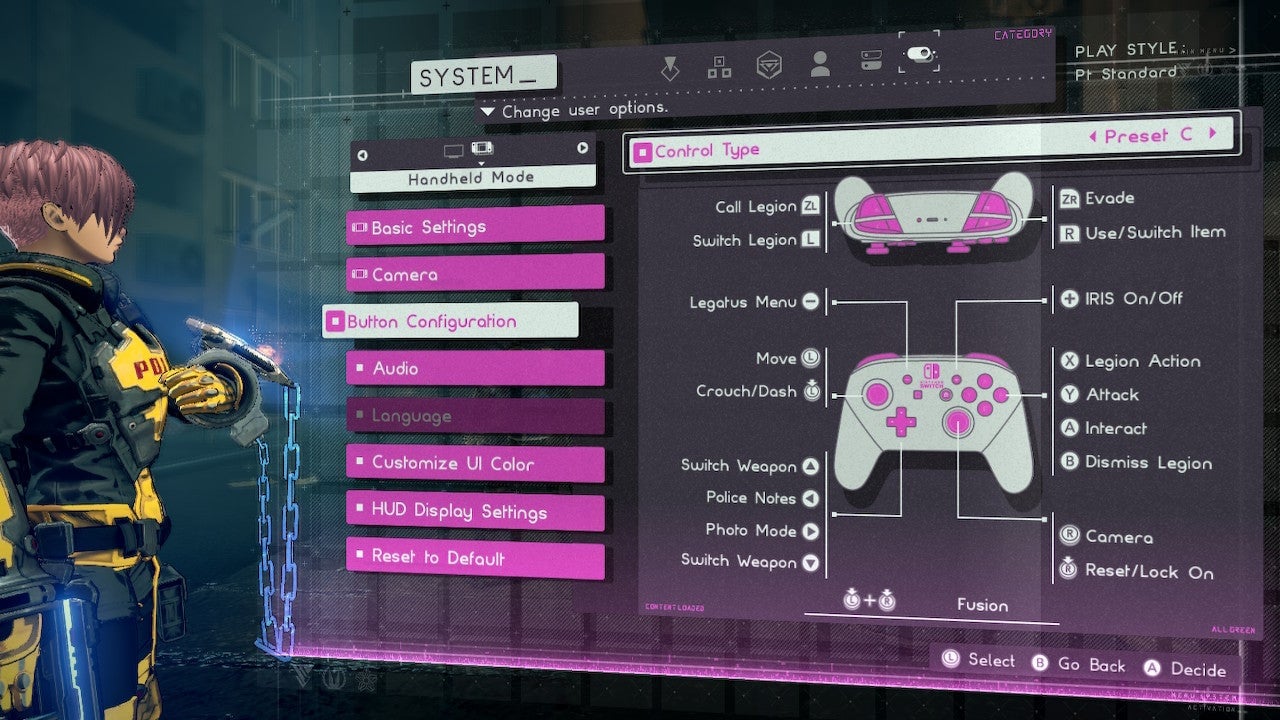 With the player controlling both their character and their tethered companion, Astral Chain has to allow them to do a whole hell of a lot of things with the Switch controller. Attacking, dodging, activating link attacks, using items, summoning Legions, activating a Legionâs special ability, taking selfies, performing chain jumpsâitâs a lot. If you find yourself hitting the wrong buttons over and over again, as I did during my playthrough, wade into the gameâs menu and change it up.
