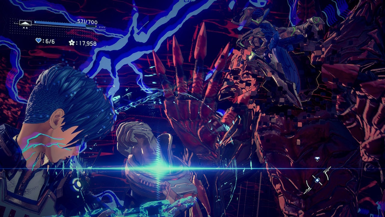 Fighting in Astral Chain is a cooperative affair. A player will not last long if they ignore the benefits of having an otherworldly beast at the other end of their astral tether. Get used to taking control of your Legions in the middle of battle. Circle tough enemies to tangle them in the chain, temporarily binding them. Position yourself and your Legion on either side of the path of a charging enemy to stop it in its tracks and then send it flying. Position your Legion in the path of several enemies and then zip towards it, damaging every baddie you pass along the way. And watch for the flash at the end of a combo that indicates an opportunity to perform a powerful sync attack.